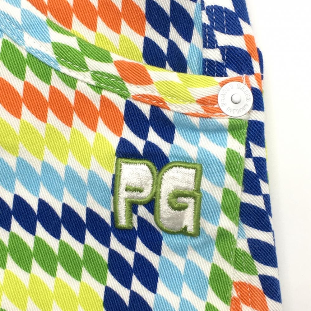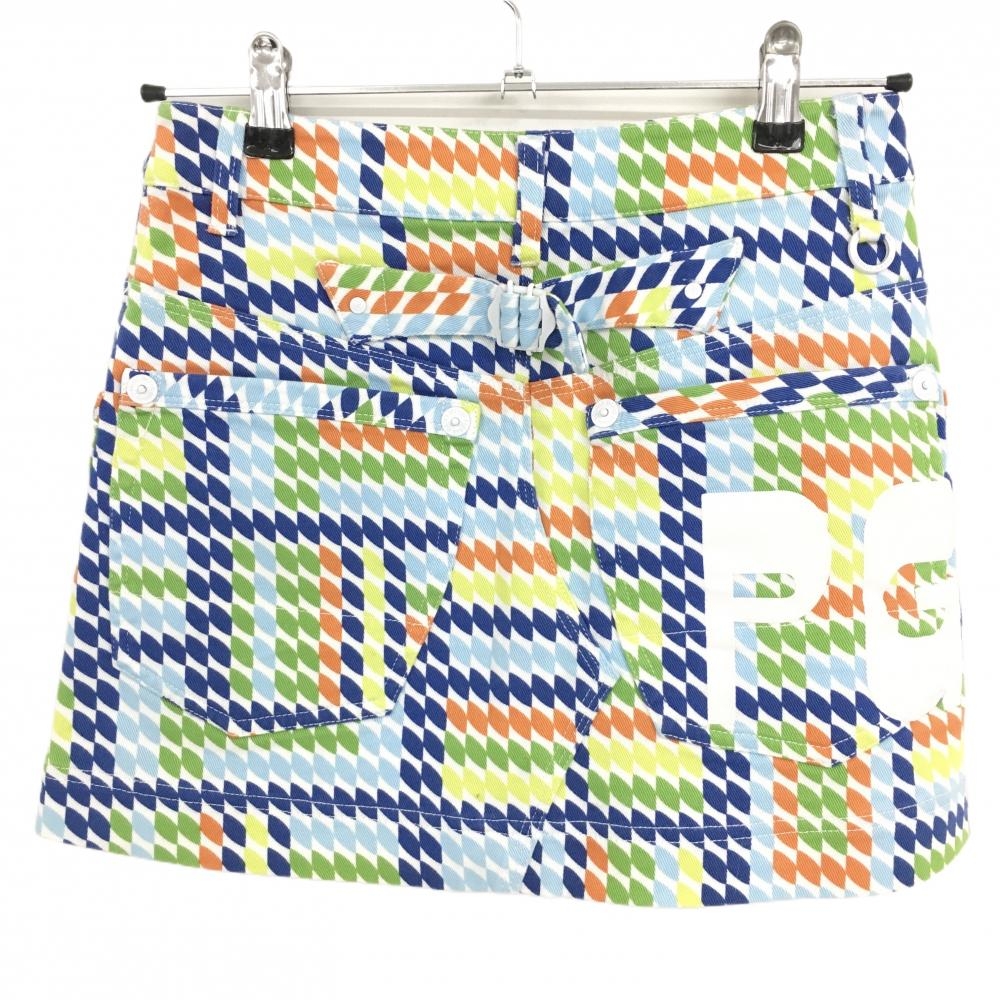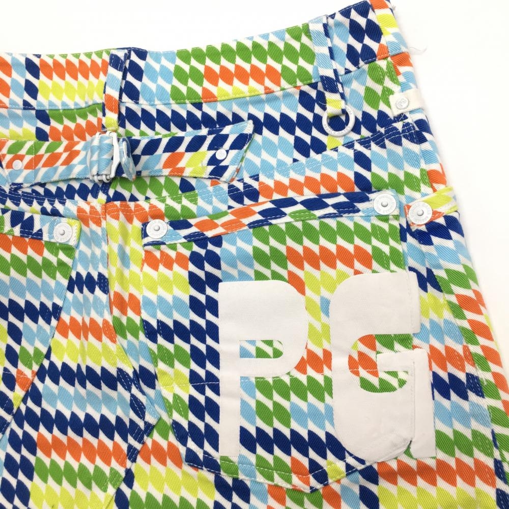 【超美品】パーリーゲイツ スカート 白×マルチカラー 総柄 ストレッチ レディース 0(S) ゴルフウェア PEARLY GATES