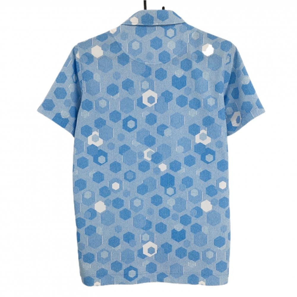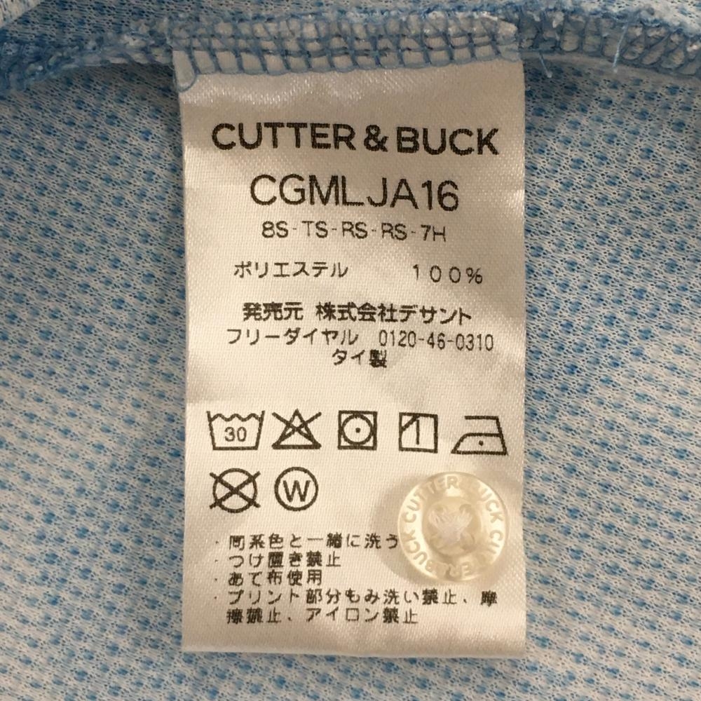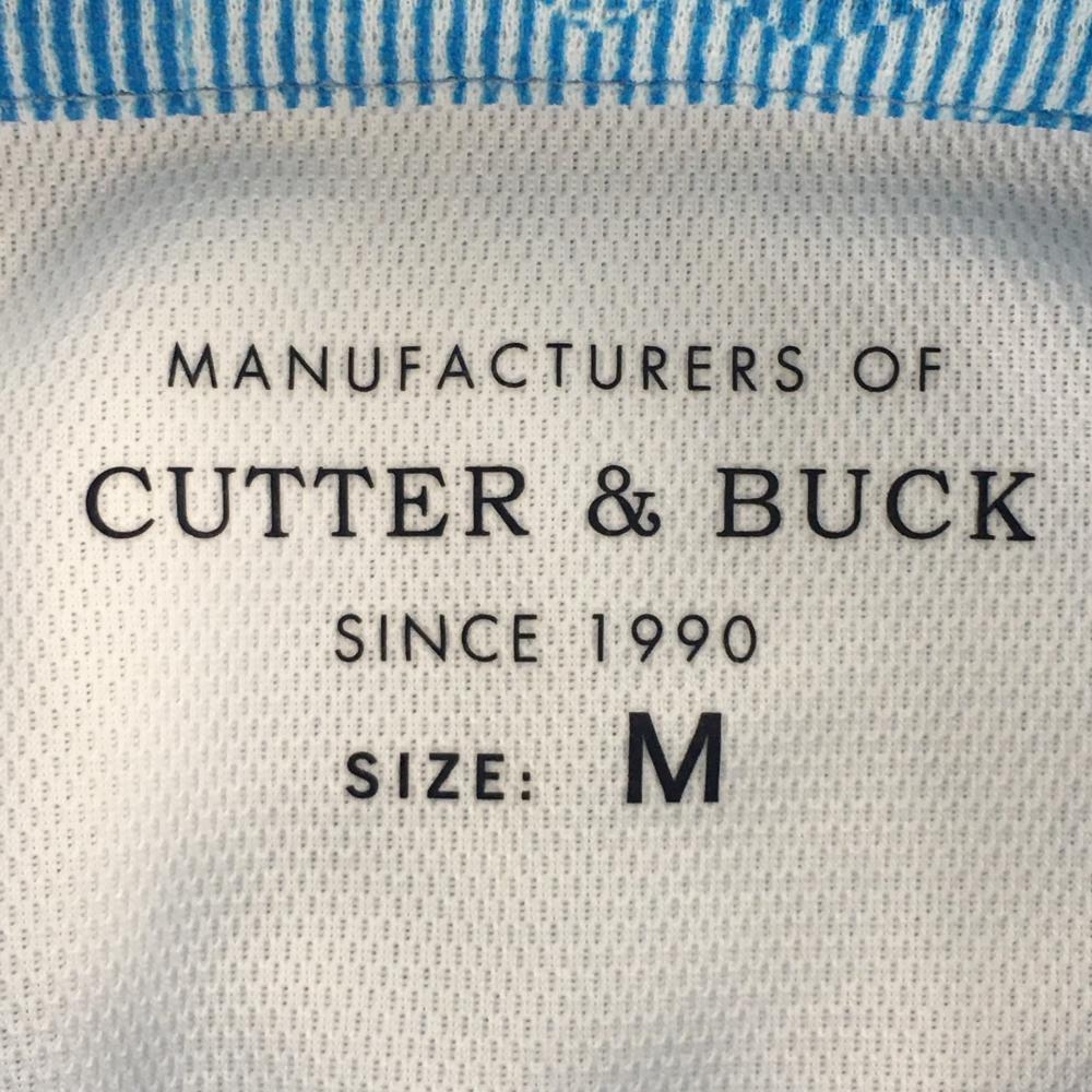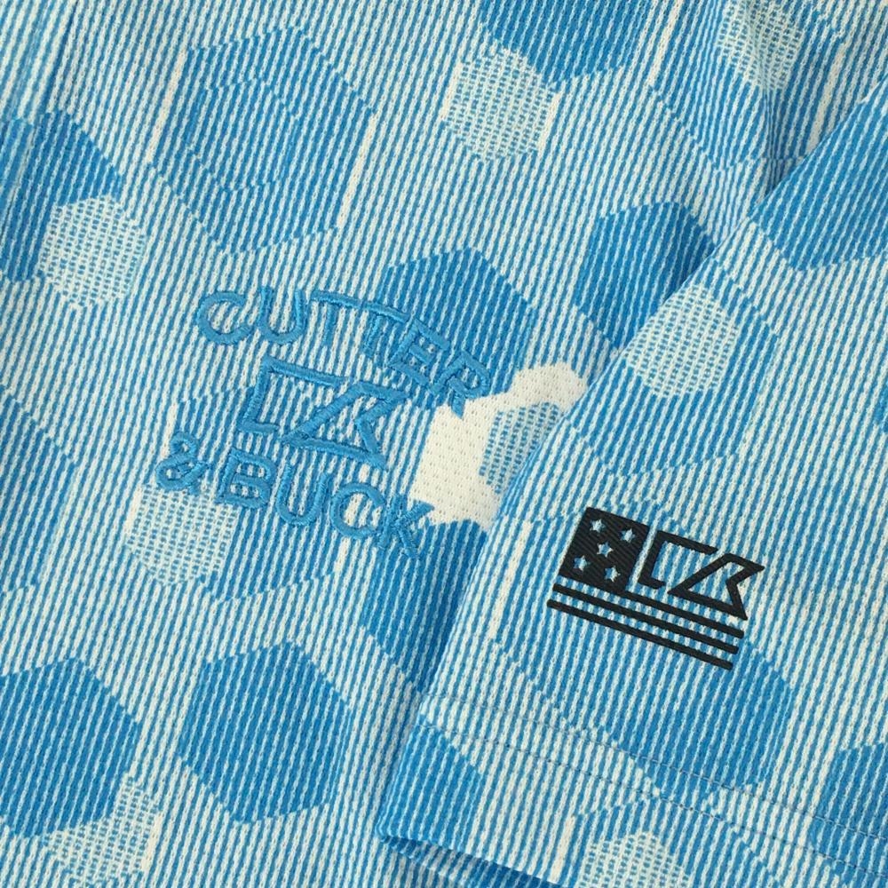 【超美品】カッターアンドバック 半袖ポロシャツ ライトブルー×白 総柄 メンズ M ゴルフウェア CUTTER&BUCK