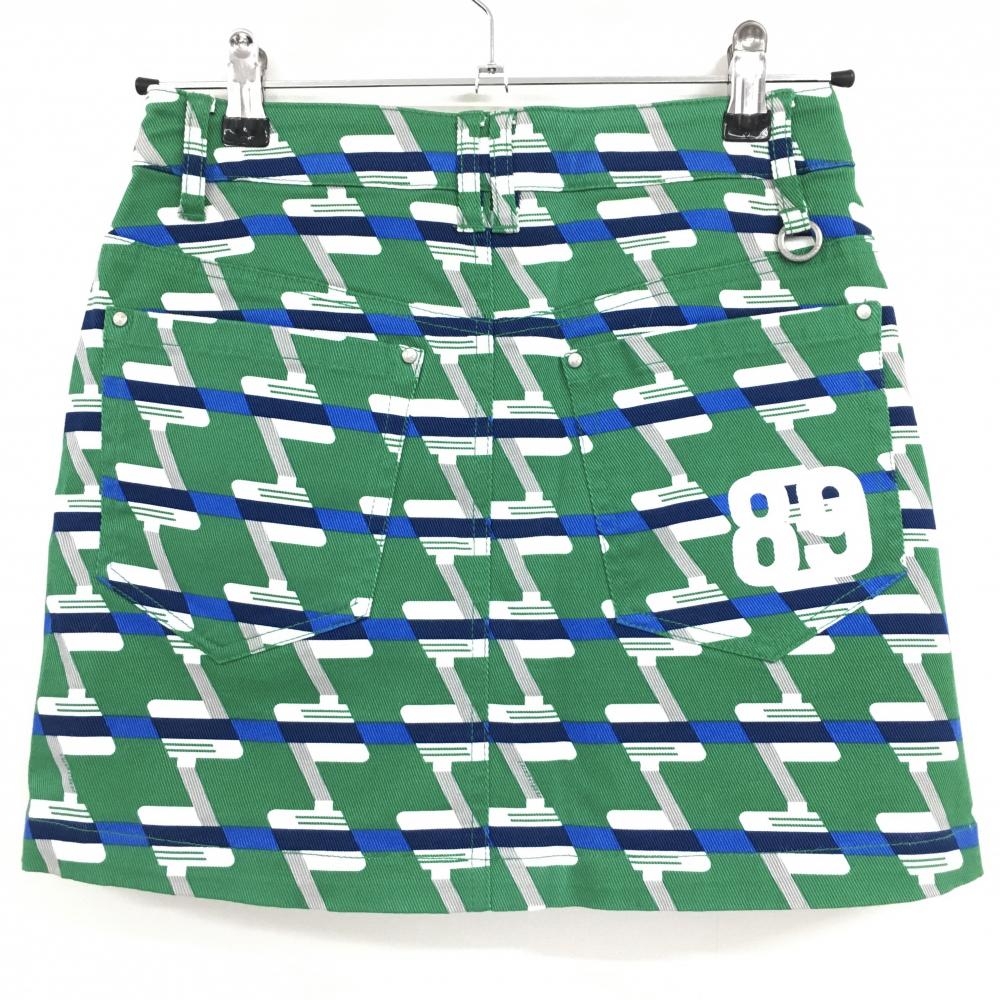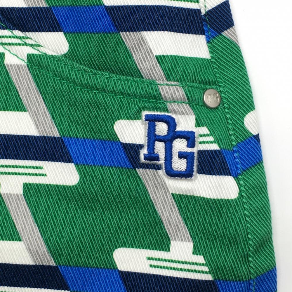 【超美品】パーリーゲイツ スカート グリーン×白 総柄 ストレッチ 30周年 レディース 0(S) ゴルフウェア PEARLY GATES