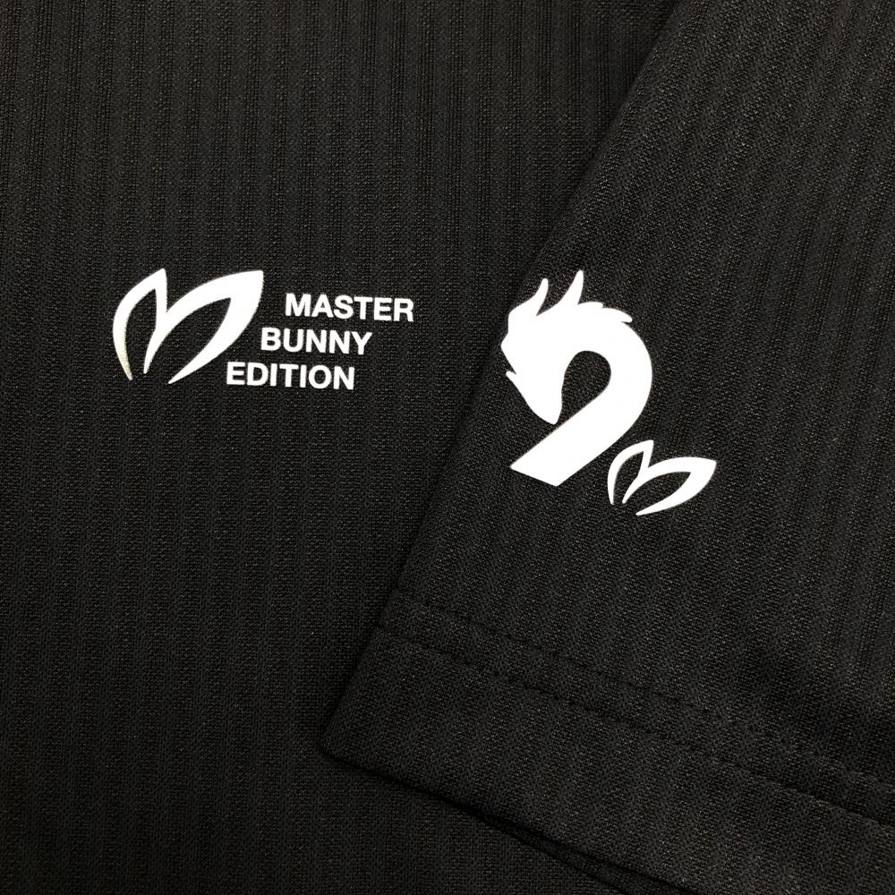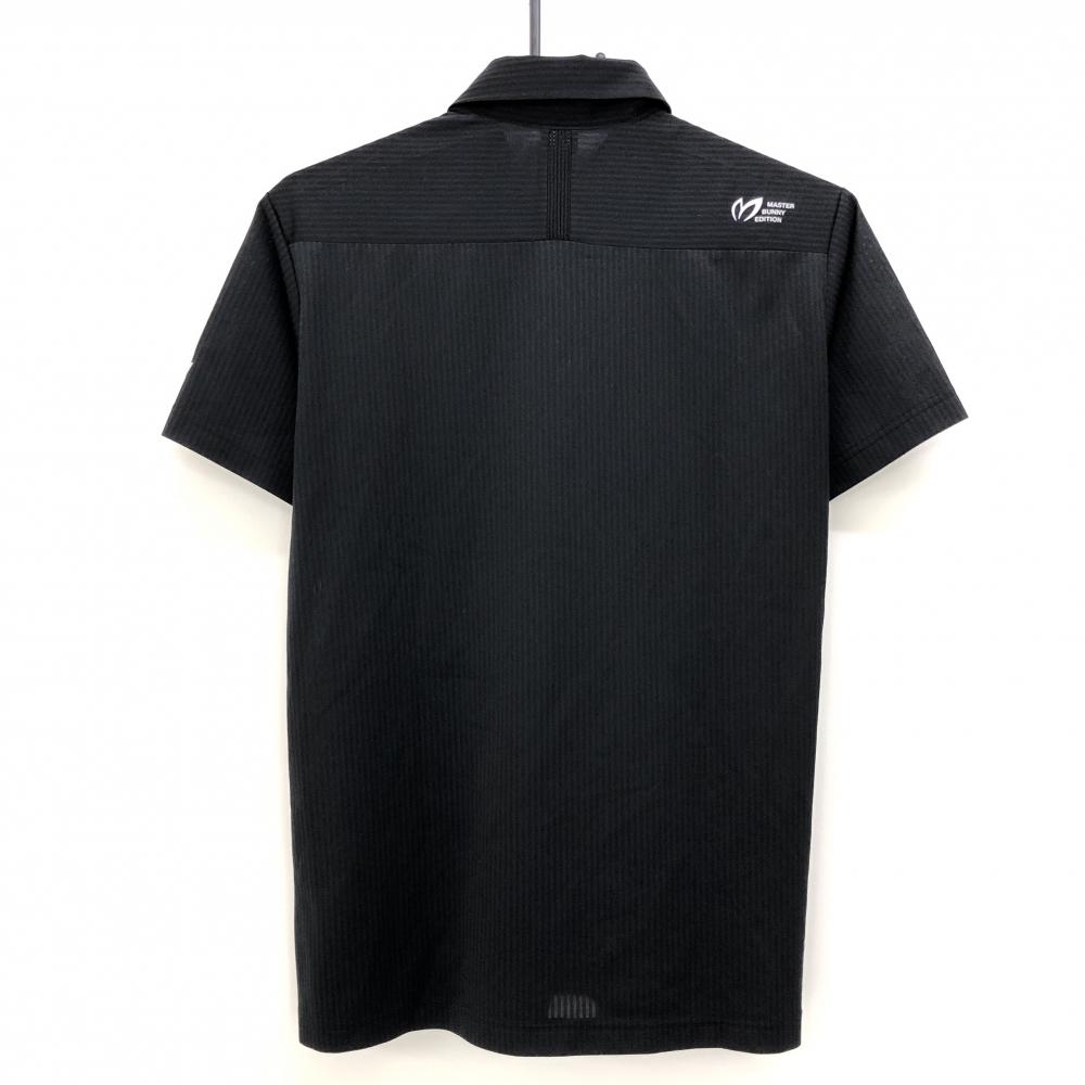 【超美品】マスターバニー 半袖ポロシャツ 黒×ダークネイビー ストライプ地模様 胸ロゴ メンズ 3(S) ゴルフウェア MASTER BUNNY EDITION