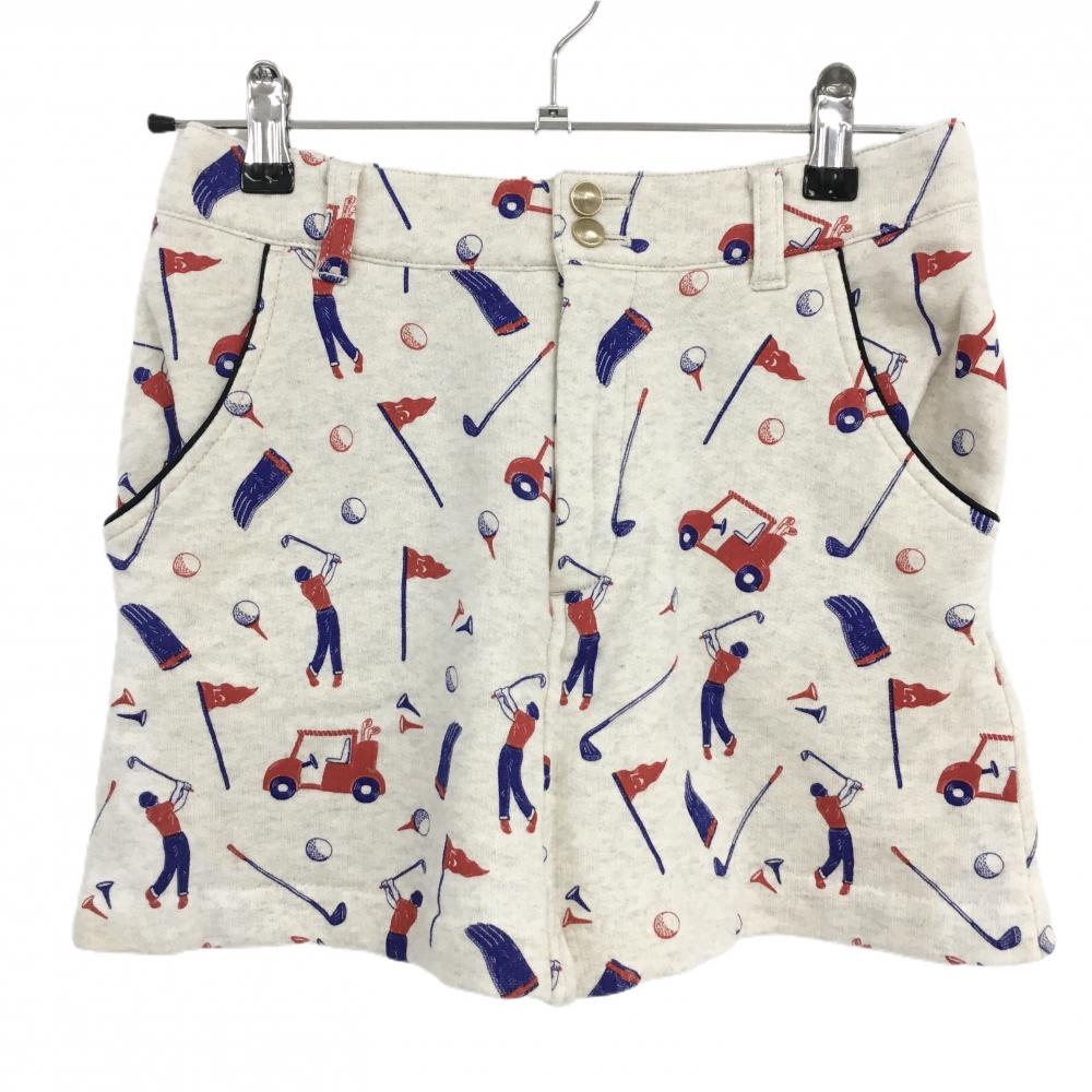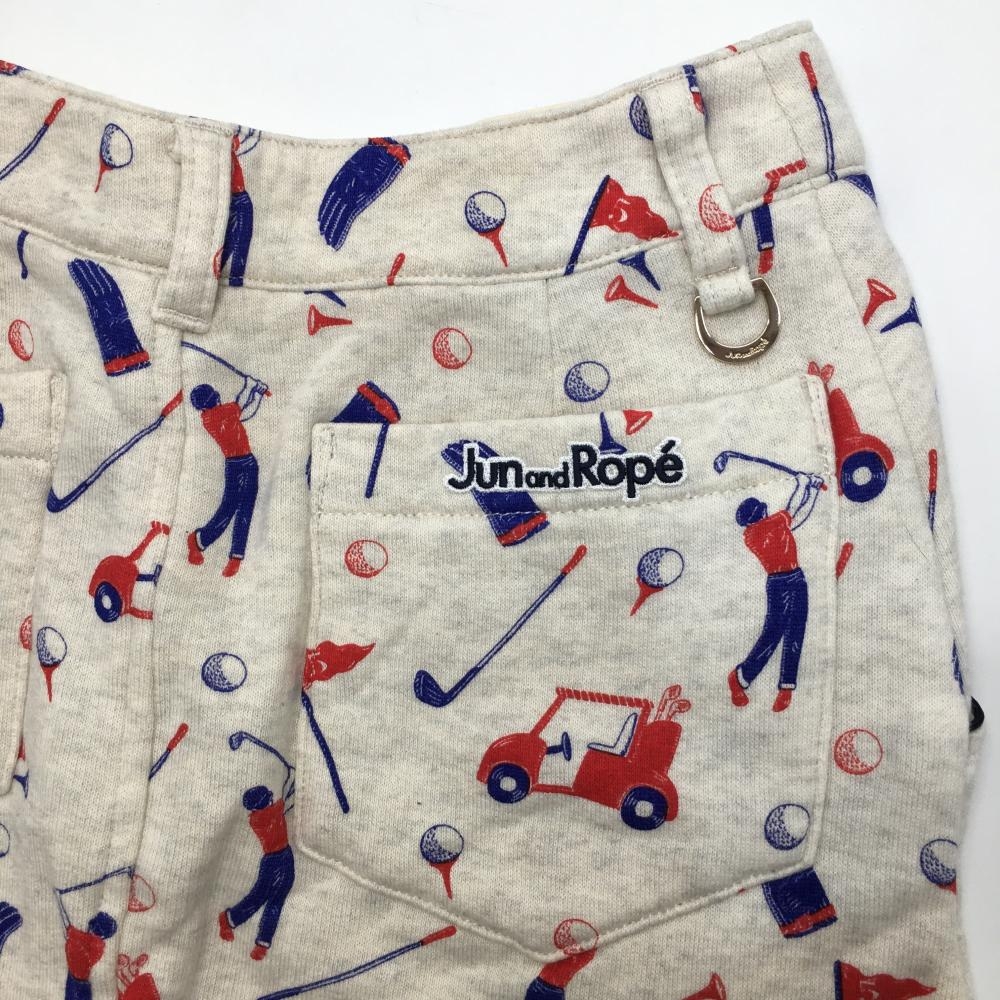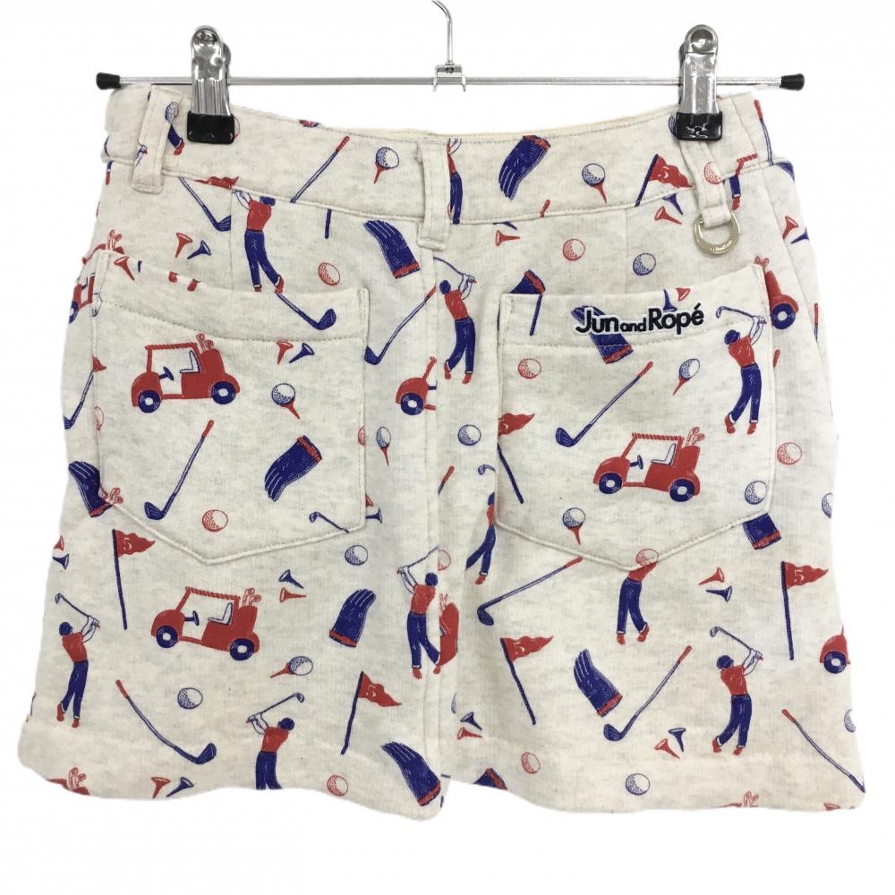 【超美品】ジュンアンドロペ スウェットスカート オフホワイト×レッド ゴルフ用品総柄 ストレッチ レディース S ゴルフウェア JUN&ROPE