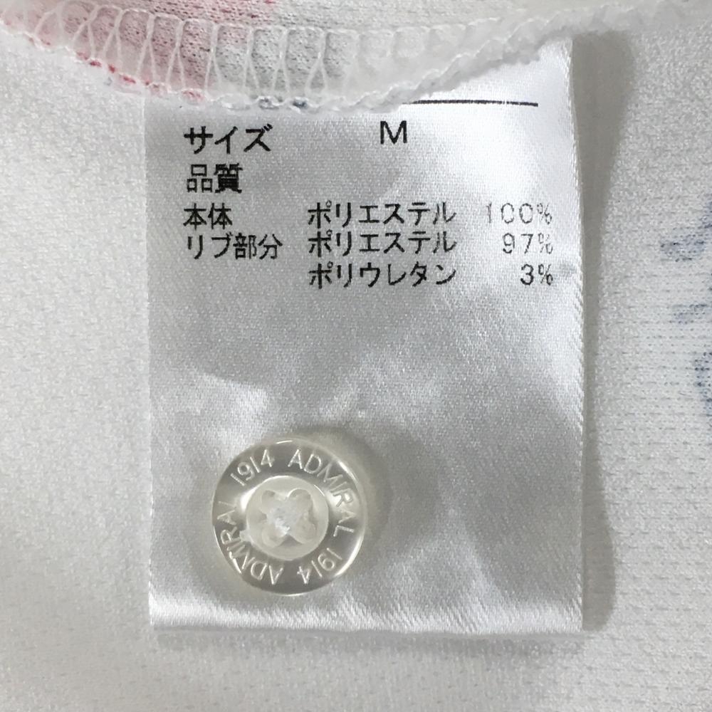 【美品】アドミラル 半袖ポロシャツ 白×ダークネイビー×レッド 総柄 音符 ユニオンジャック メンズ M ゴルフウェア Admiral