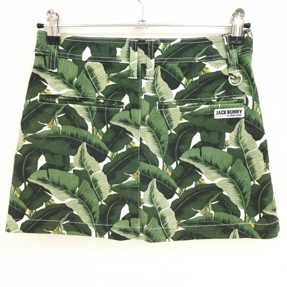 【超美品】ジャックバニー スカート グリーン×アイボリー リーフ柄 レディース 0(S) ゴルフウェア Jack Bunny