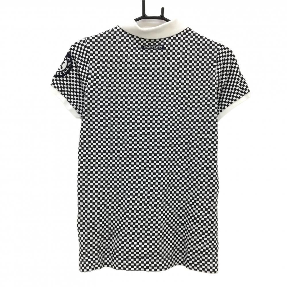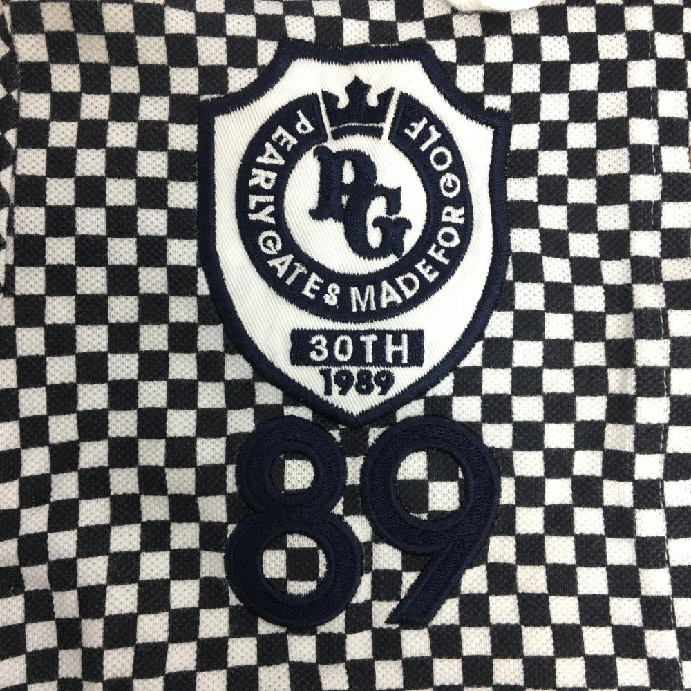 パーリーゲイツ 半袖ポロシャツ 白×黒 ブロックチェック ワッペン 30周年 レディース 0(S) ゴルフウェア PEARLY GATES