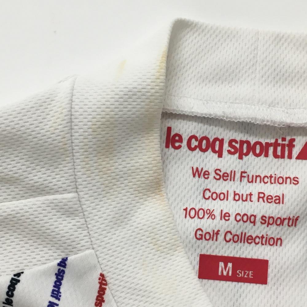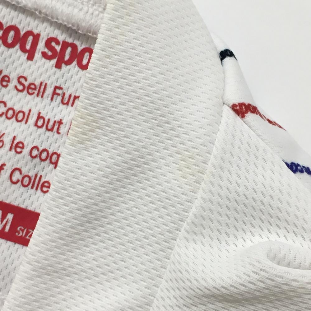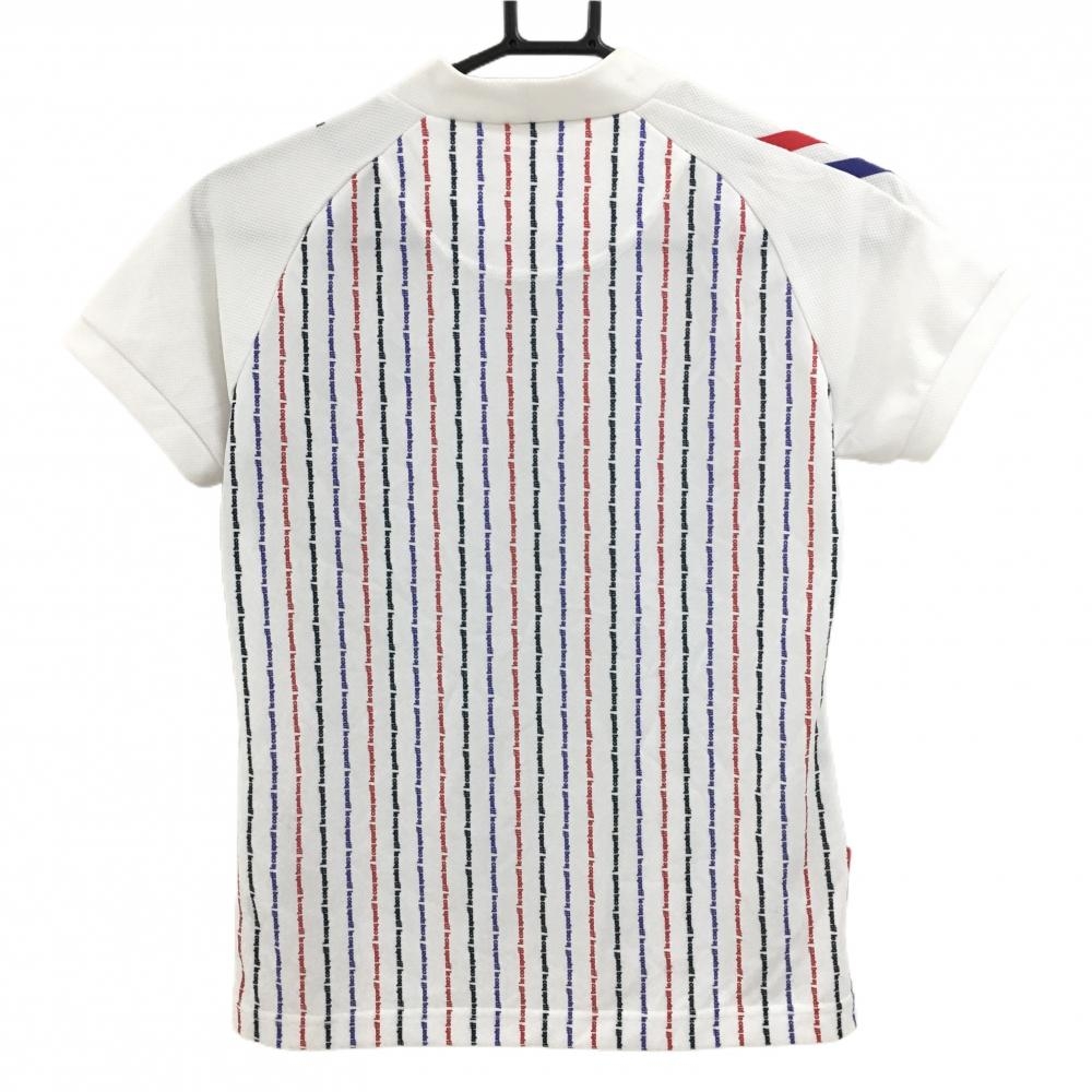 ルコックゴルフ 半袖ハイネックシャツ 白×ネイビー 身頃ロゴストライプ レディース M ゴルフウェア le coq sportif