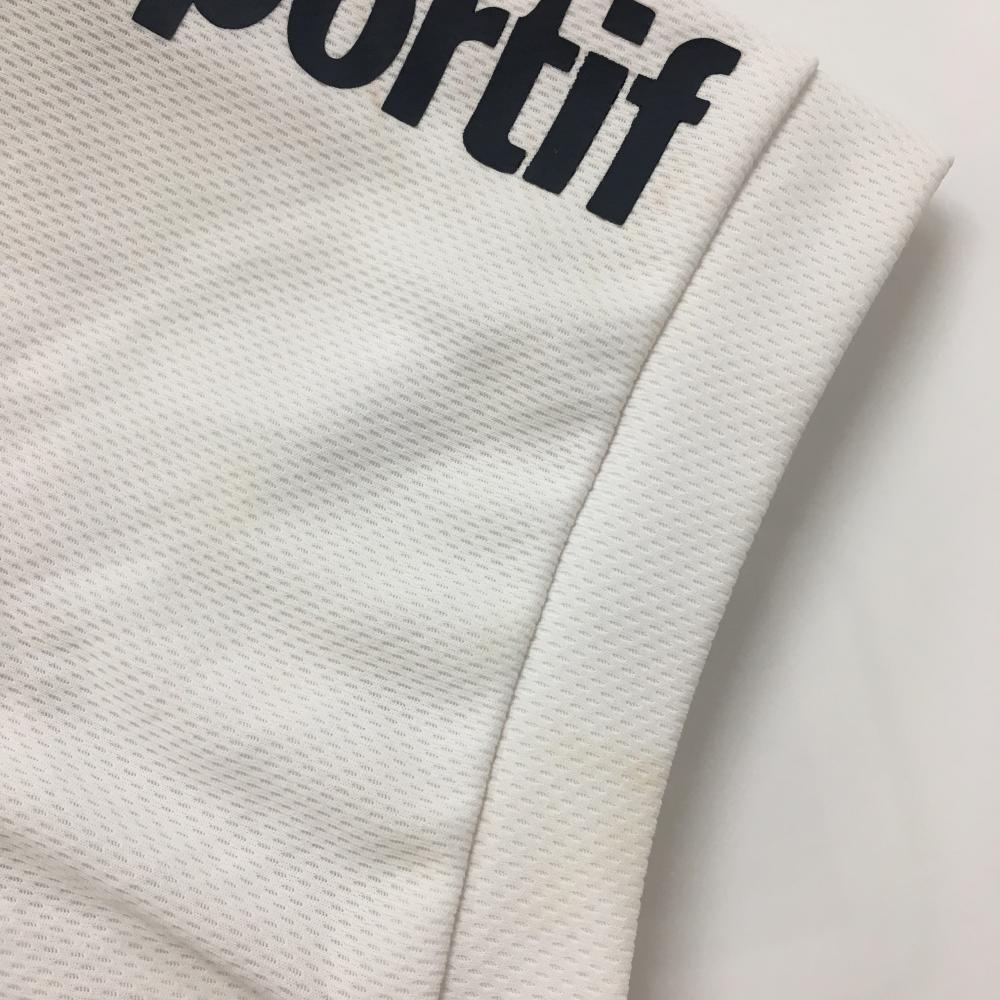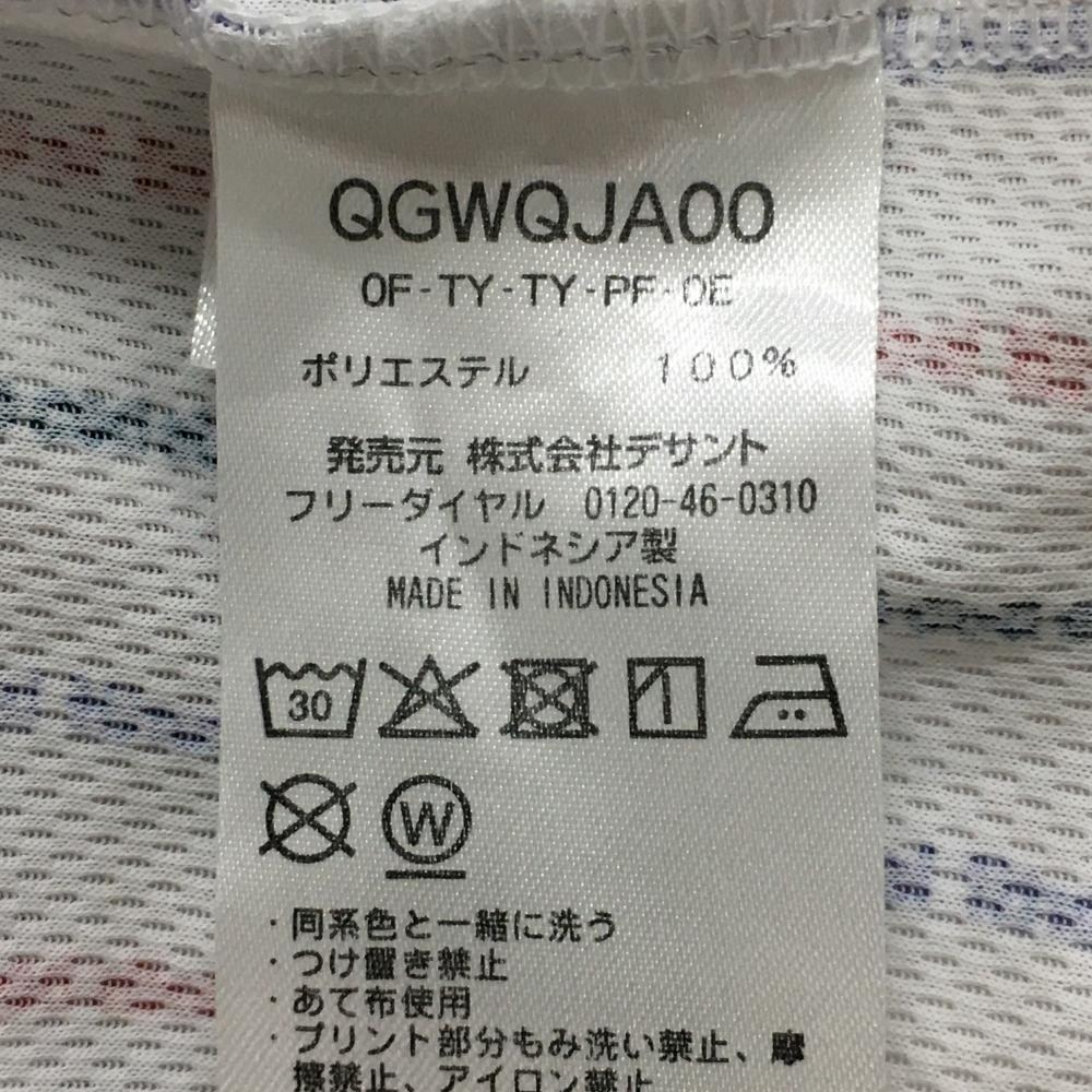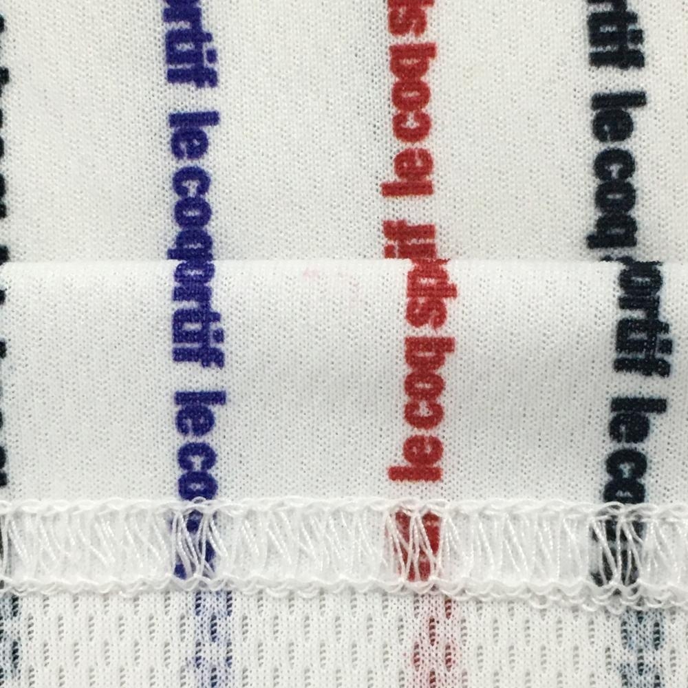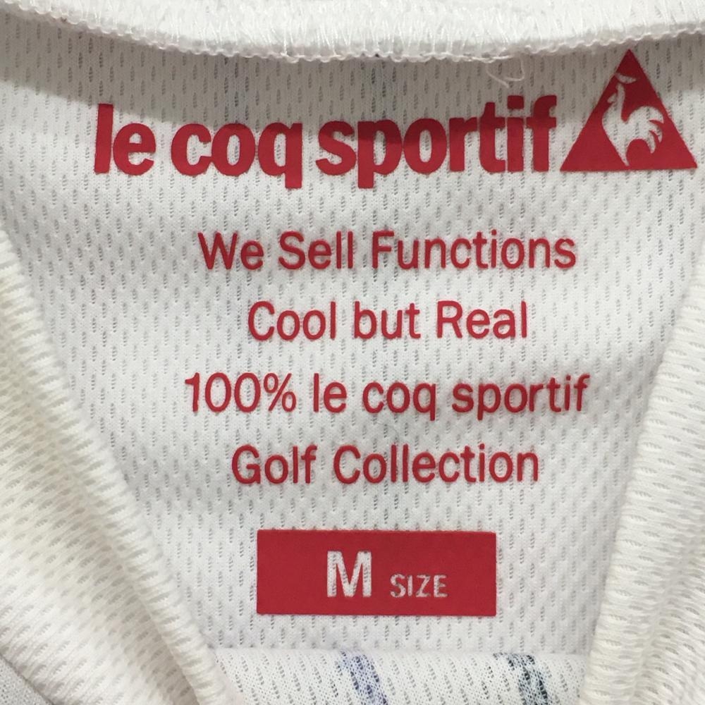 ルコックゴルフ 半袖ハイネックシャツ 白×ネイビー 身頃ロゴストライプ レディース M ゴルフウェア le coq sportif