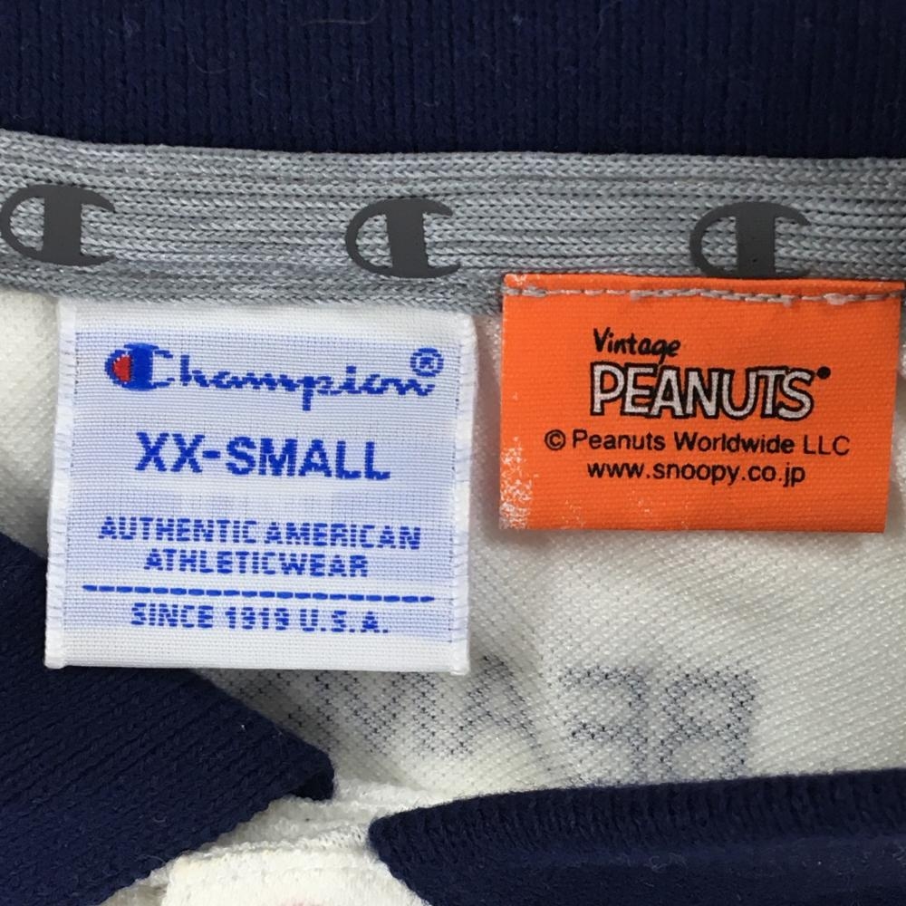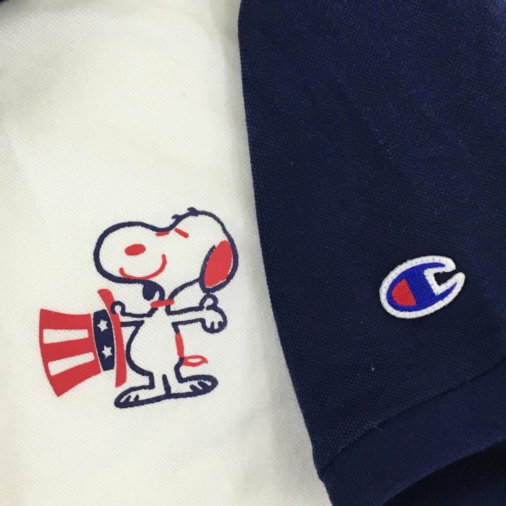チャンピオン×ビームスゴルフ 半袖ポロシャツ 白×ネイビー スヌーピープリント PEANUTS レディース XXSMALL ゴルフウェア Champion