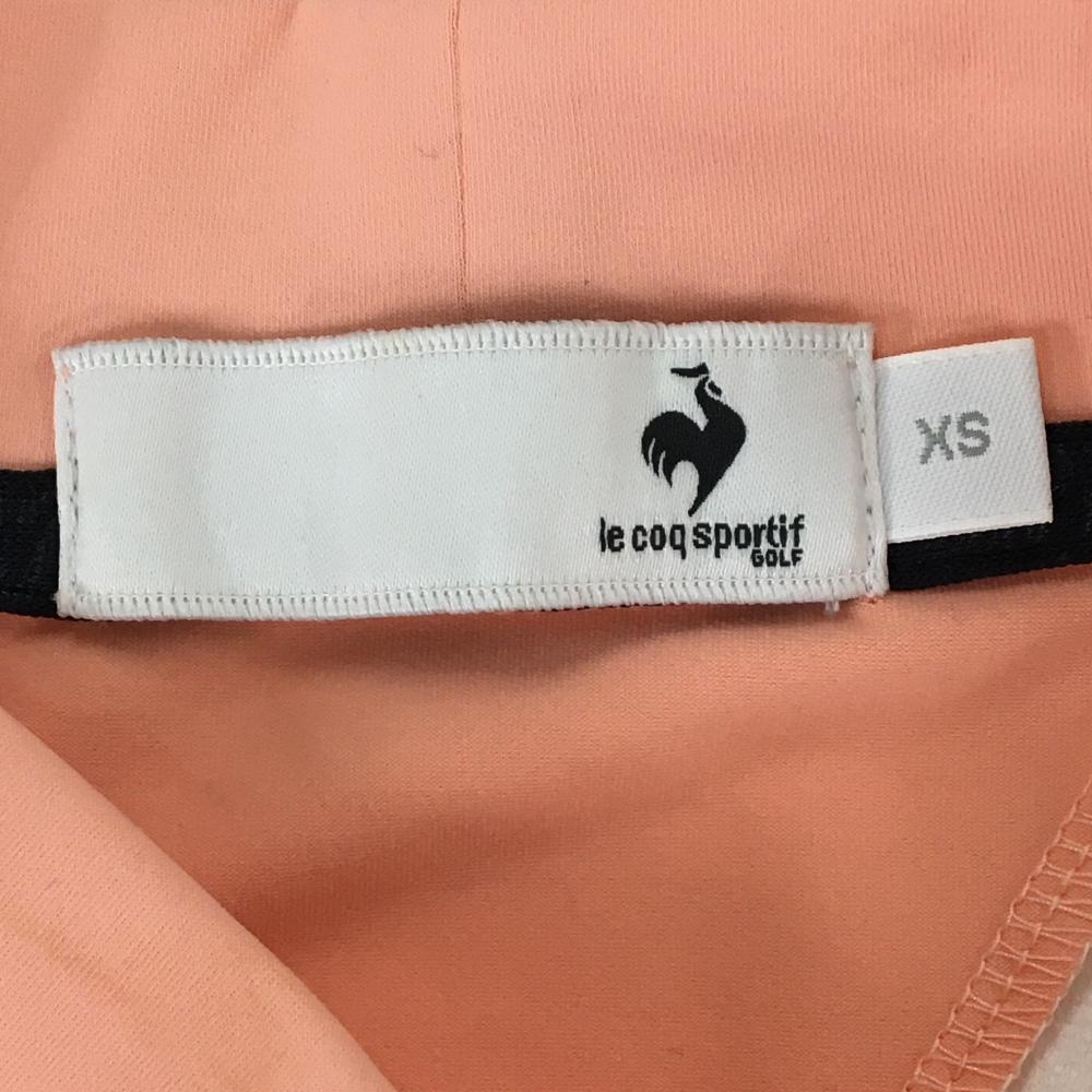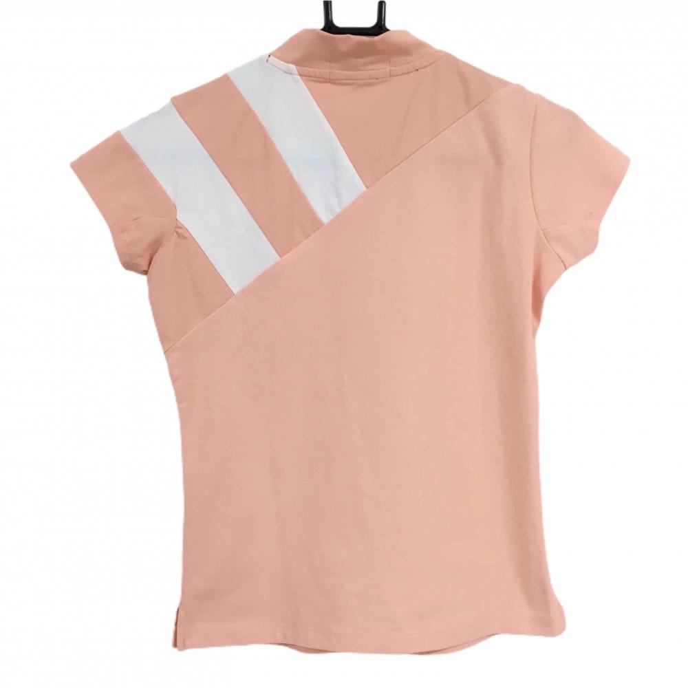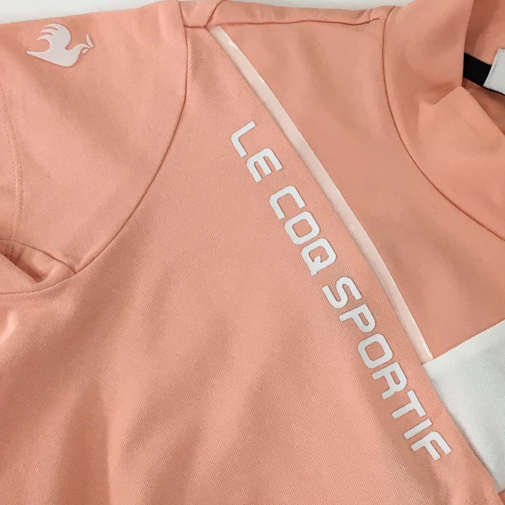 【超美品】ルコックゴルフ 半袖ハイネックシャツ ピンク×白 左肩ボーダー シリコンロゴ レディース XS ゴルフウェア le coq sportif