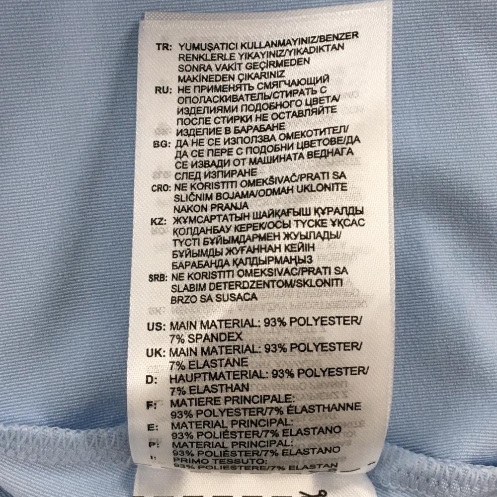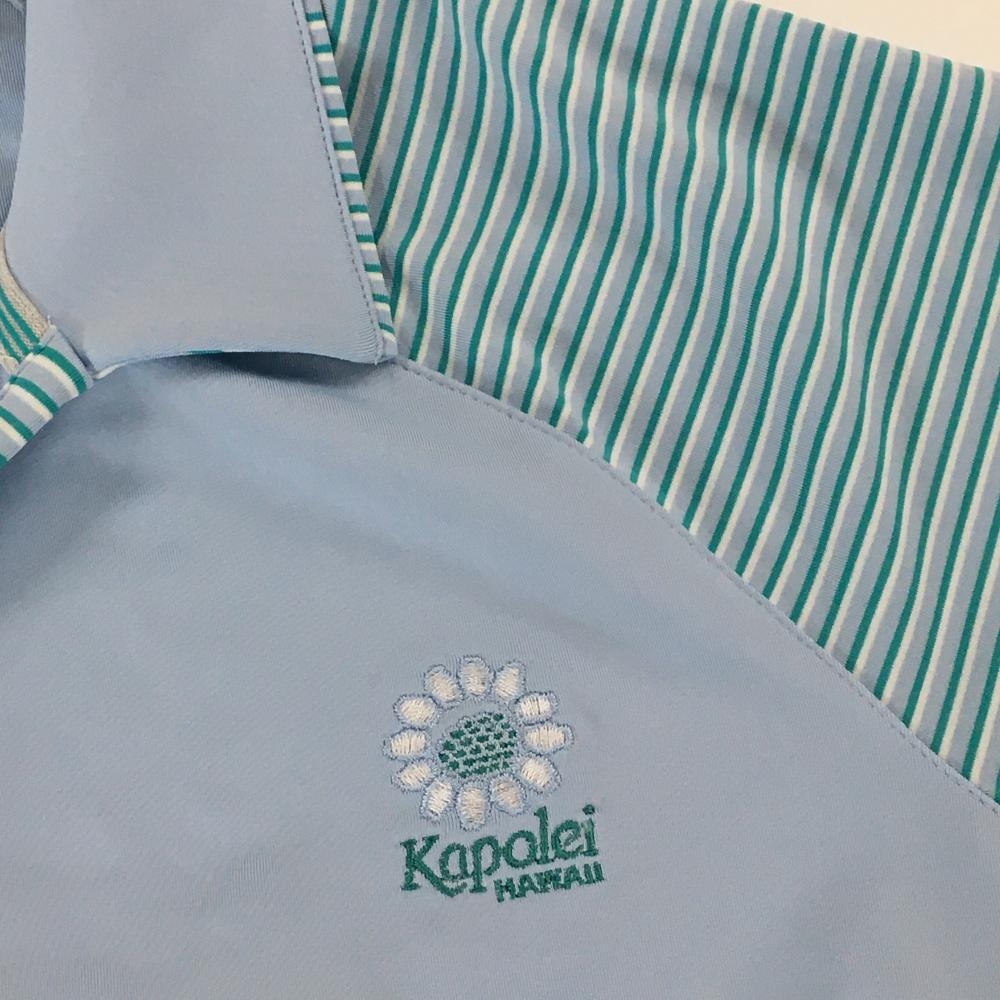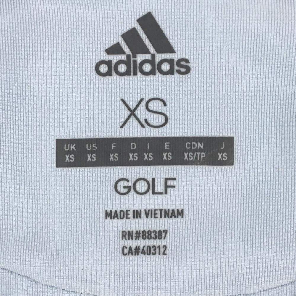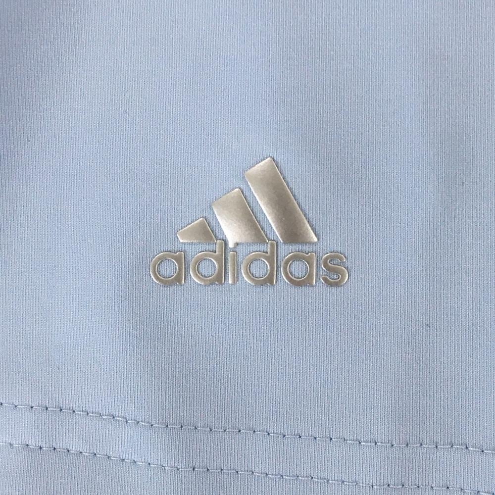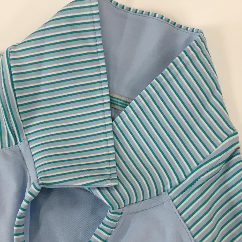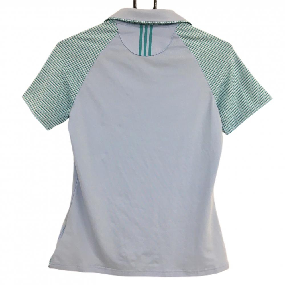 【超美品】アディダス 半袖スキッパーシャツ ライトブルー×グリーン 袖・襟裏ボーダー レディース XS ゴルフウェア adidas
