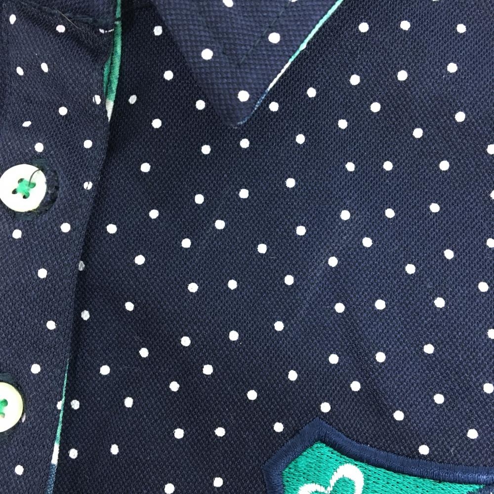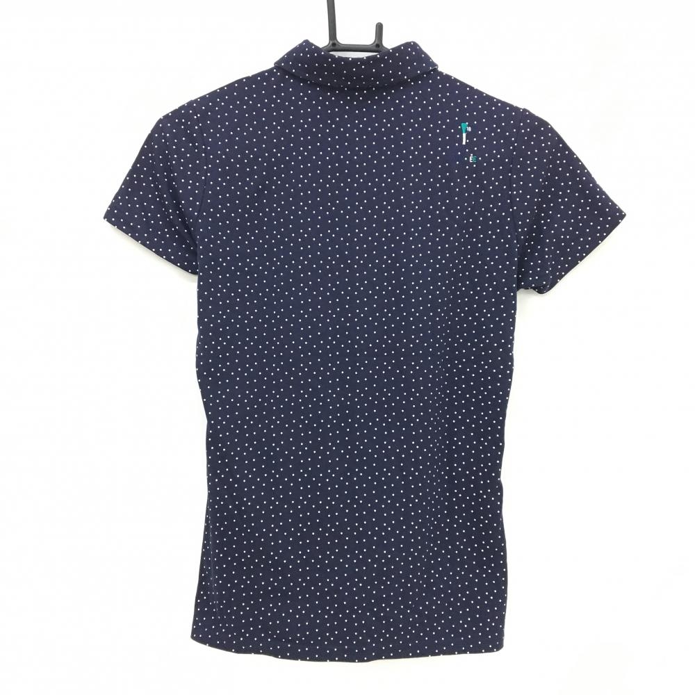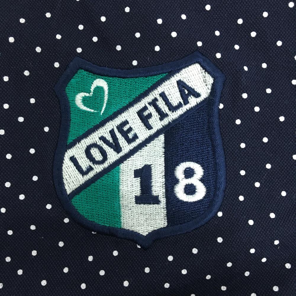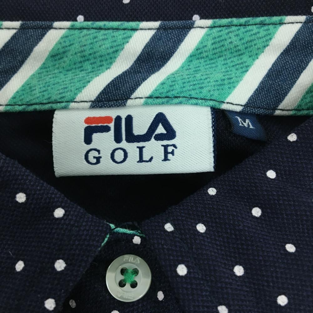 【美品】フィラゴルフ 半袖ポロシャツ ネイビー×白 ピンドット 襟裏ストライプ レディース M ゴルフウェア FILA GOLF