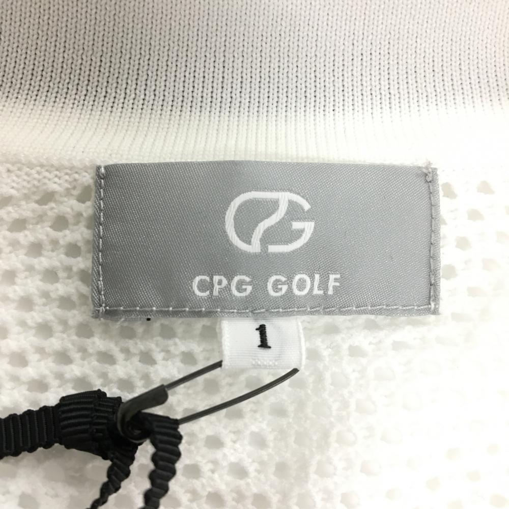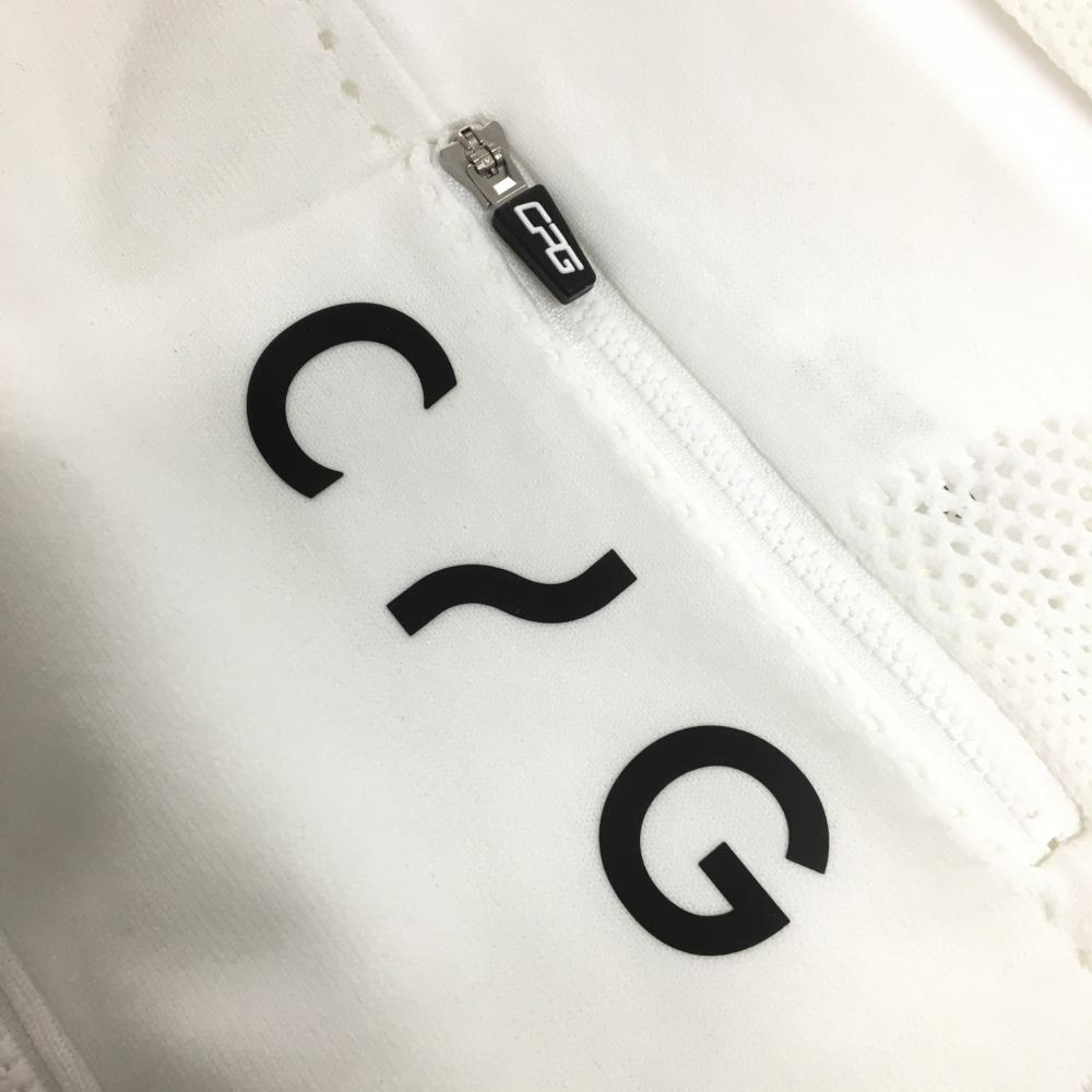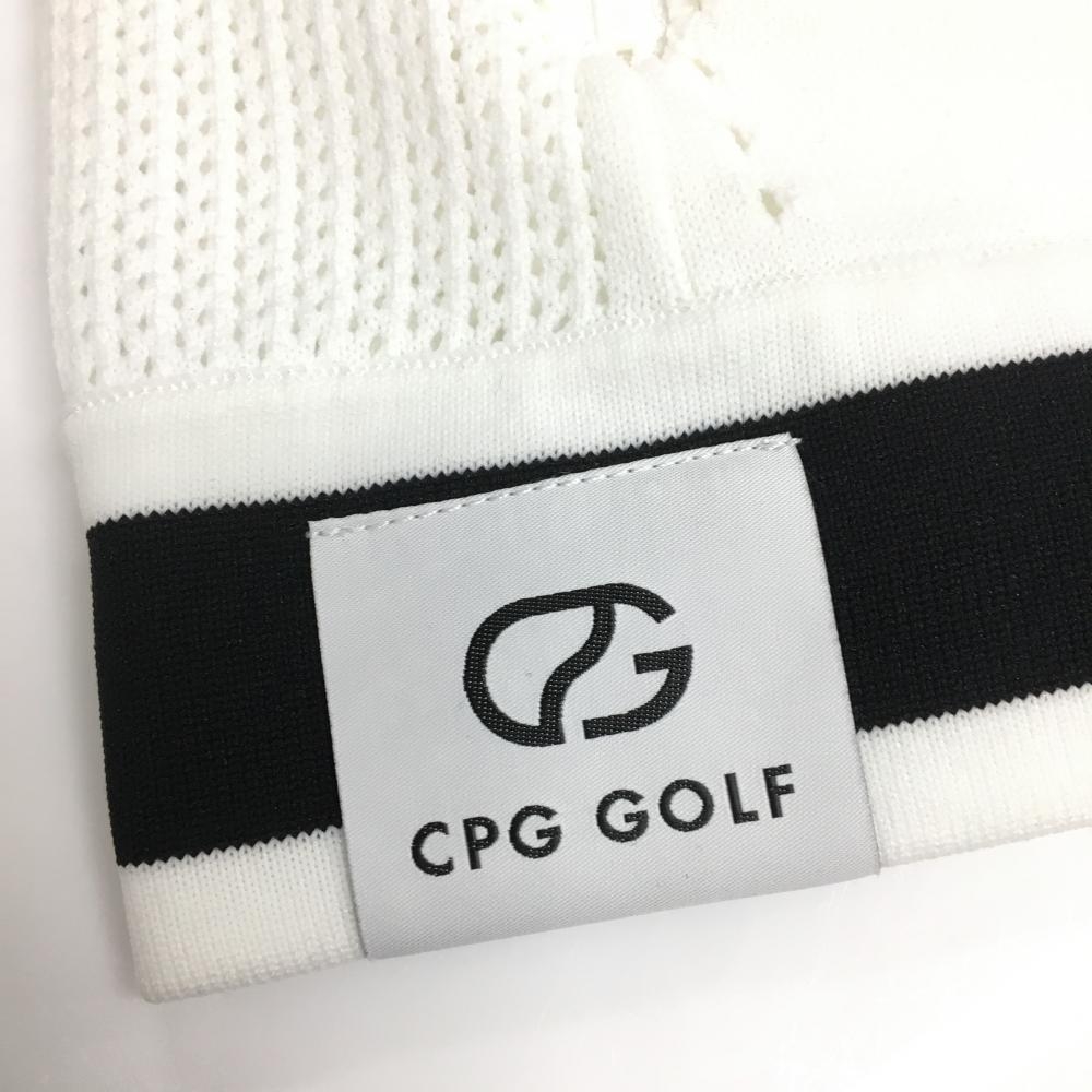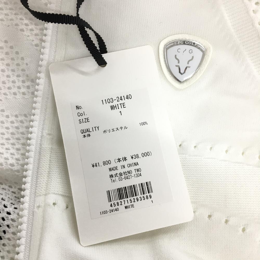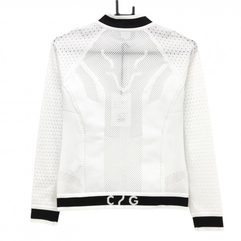 【新品】CPG ニットジャケット 白×黒 透かし編み 立体ロゴ レディース 1(S) ゴルフウェア 2024年モデル CPG
