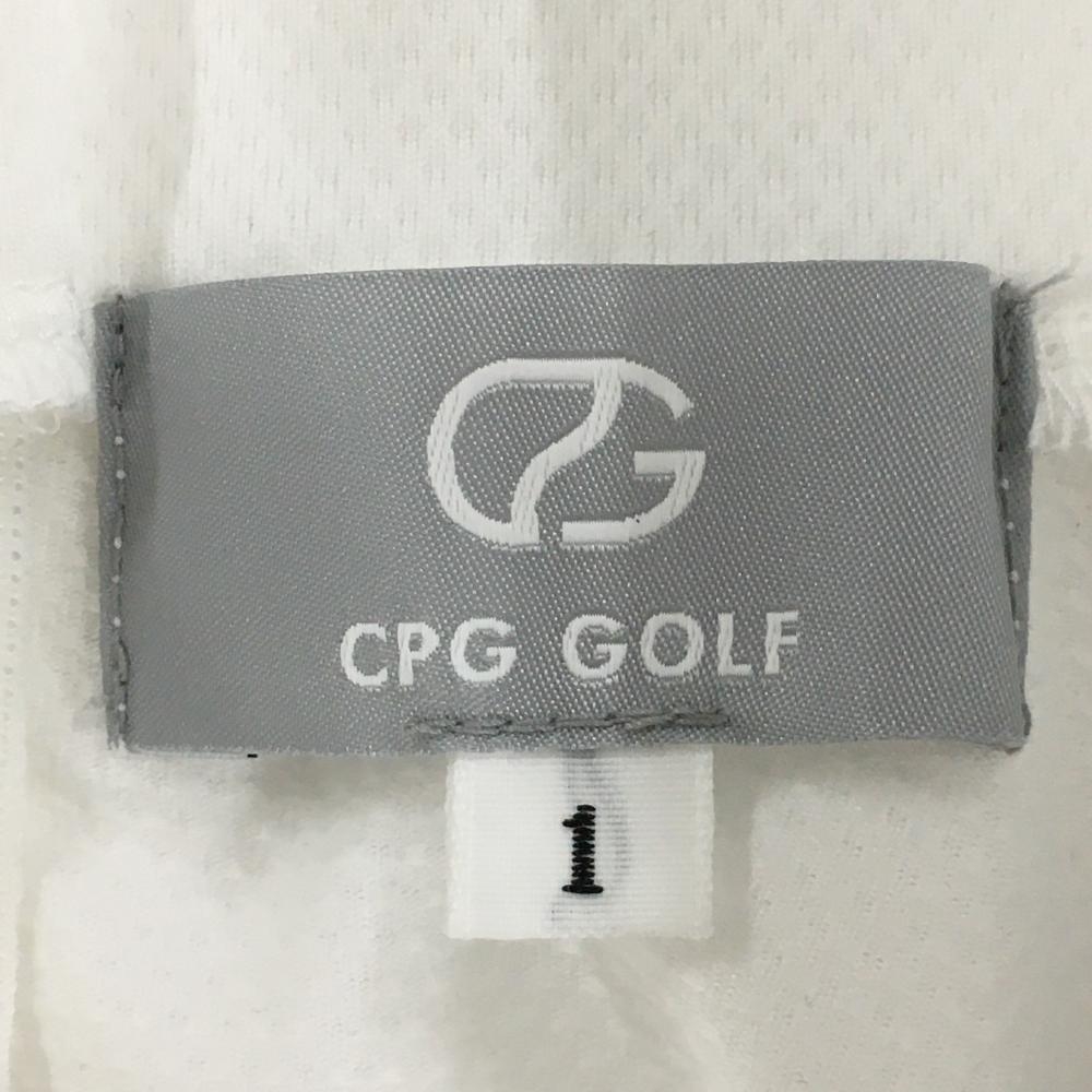【新品】CPG 半袖ハイネックシャツ 白×レッド メッシュ調 ロゴプリント 後ろハーフジップ レディース 1(S) ゴルフウェア 2024年モデル CPG