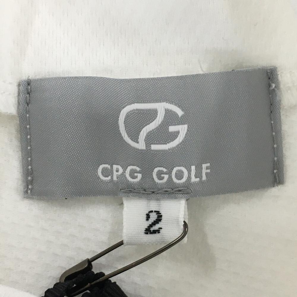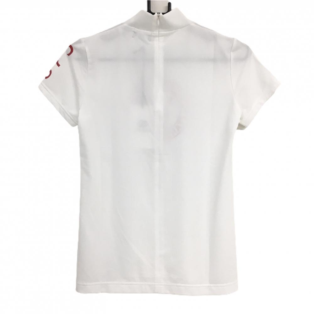【新品】CPG 半袖ハイネックシャツ 白×レッド メッシュ調 ロゴプリント 後ろハーフジップ レディース 2(M) ゴルフウェア 2024年モデル CPG
