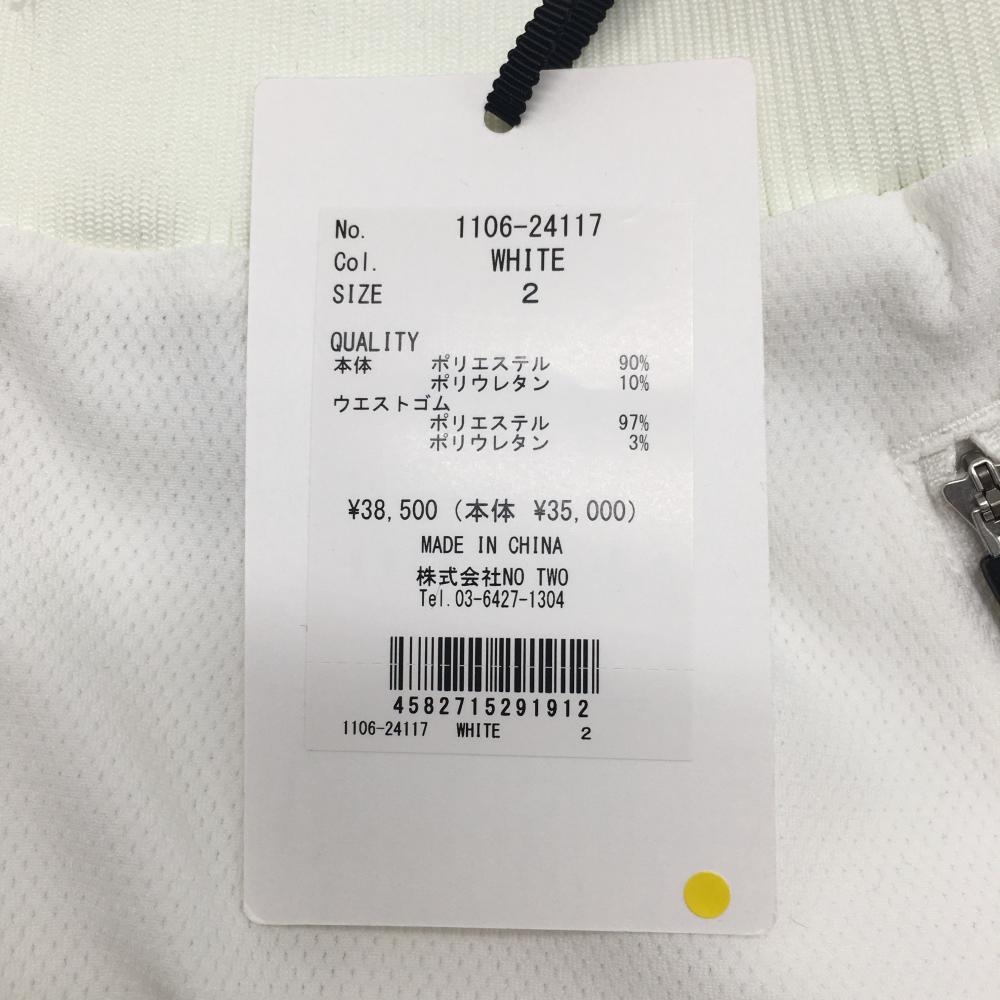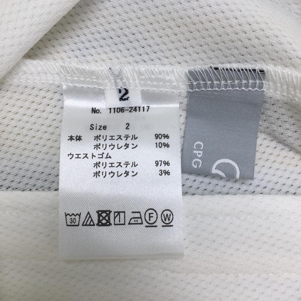 【新品】CPG スカート 白×黒 メッシュ調 ウエストゴム 調節紐 サイドロゴライン レディース 2(M) ゴルフウェア 2024年モデル CPG