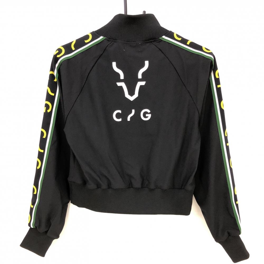 【新品】CPG ジャケットブルゾン 黒×イエロー メッシュ調 袖ロゴライン ショート丈 レディース 1(S) ゴルフウェア 2024年モデル CPG