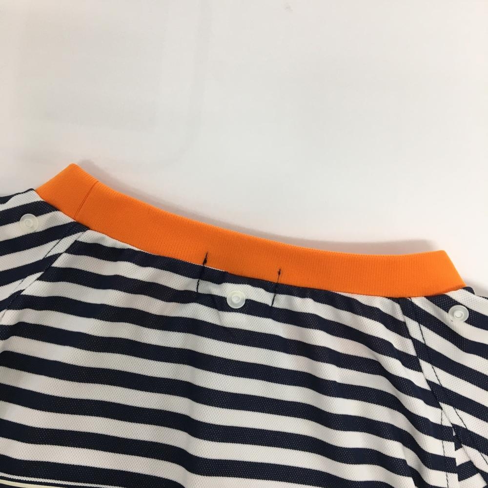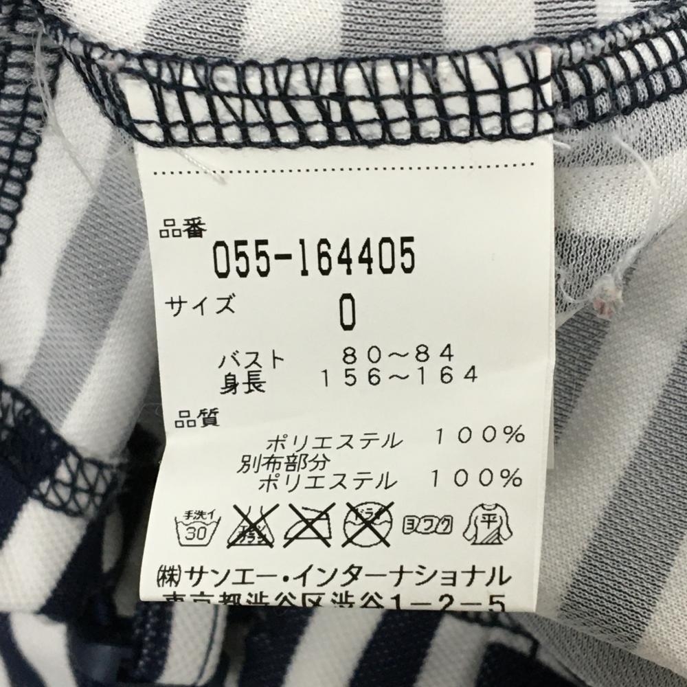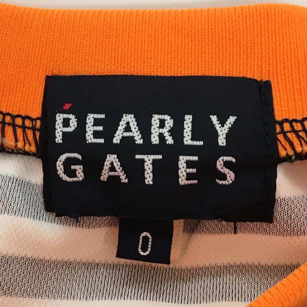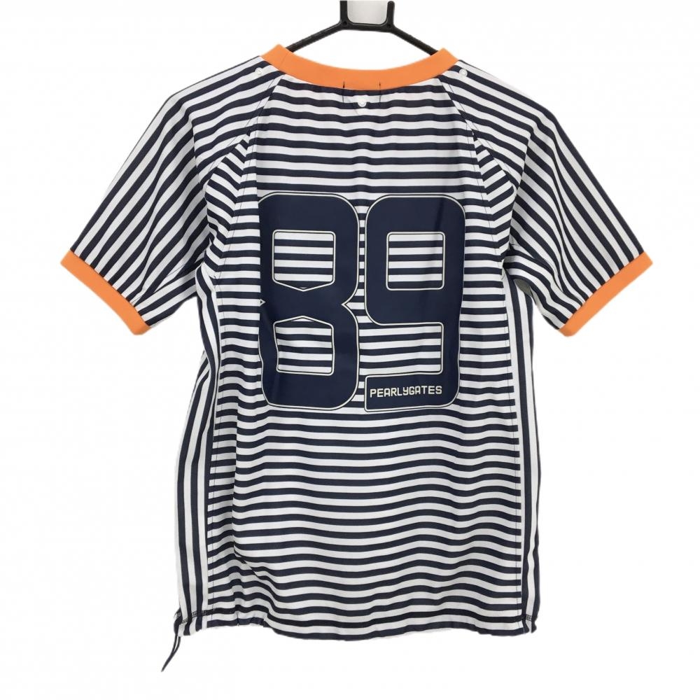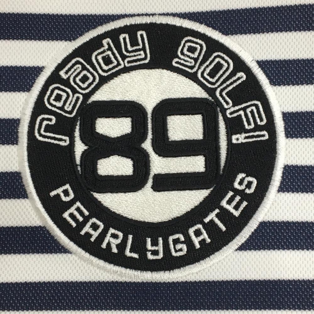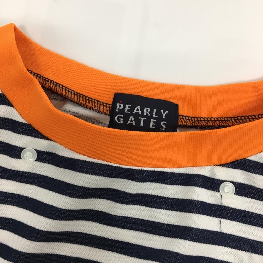 【美品】パーリーゲイツ Tシャツ 白×ネイビー ボーダー ワッペン レディース 0(S) ゴルフウェア PEARLY GATES