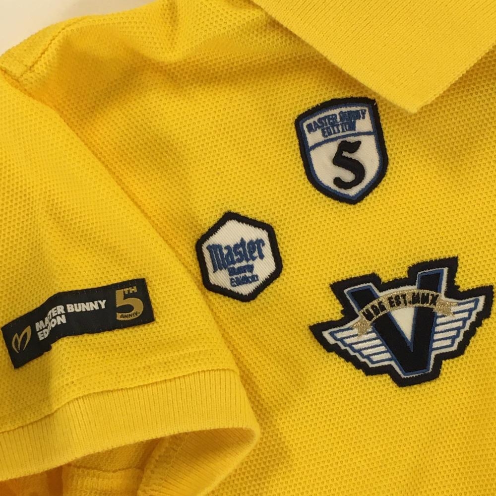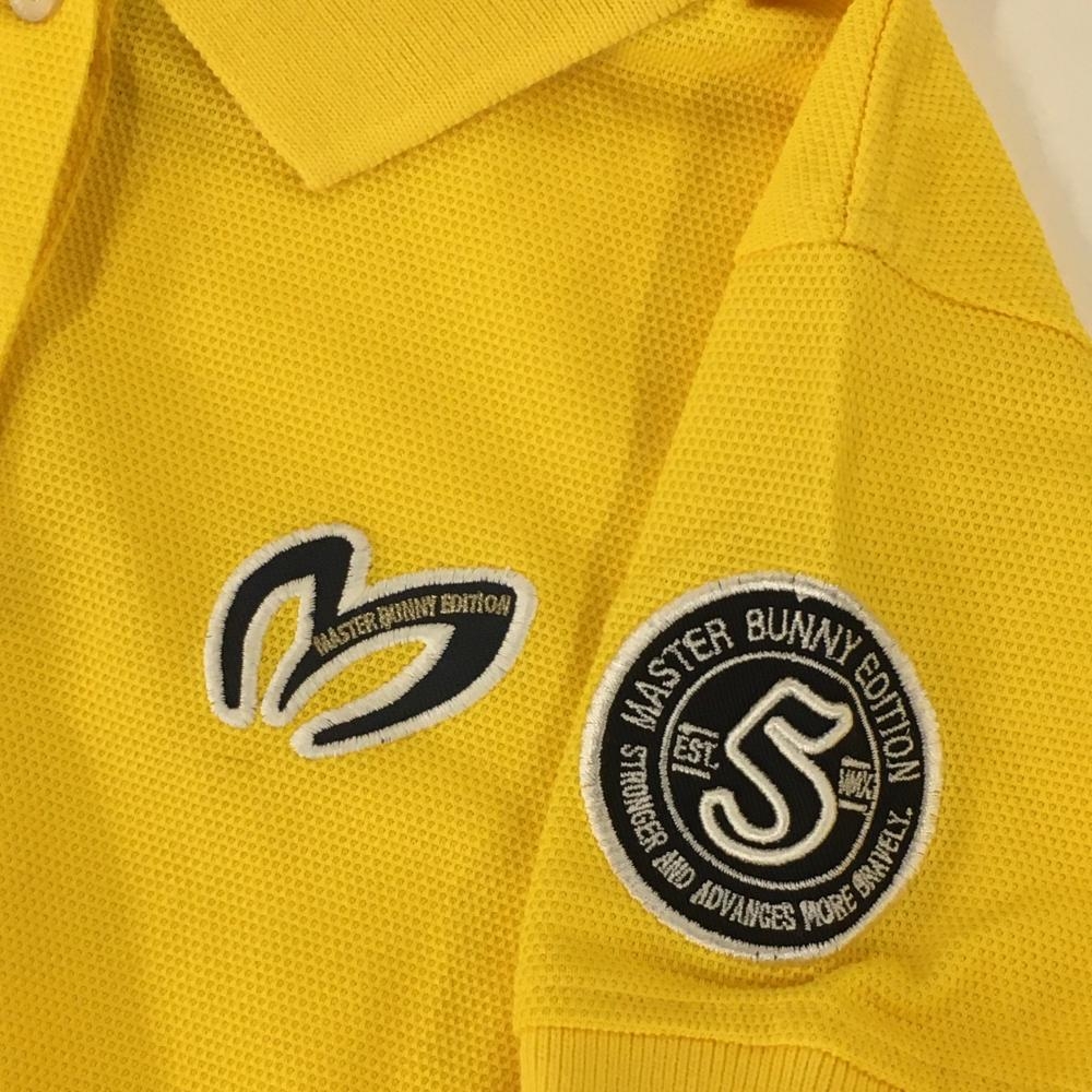 【美品】マスターバニー 半袖ポロシャツ イエロー 複数ワッペン 襟裏ロゴ レディース 0(S) ゴルフウェア MASTER BUNNY EDITION