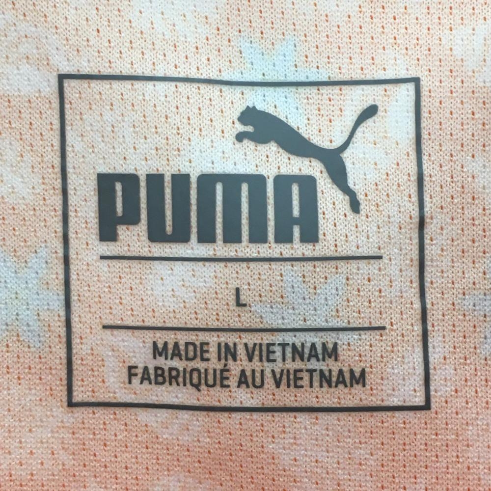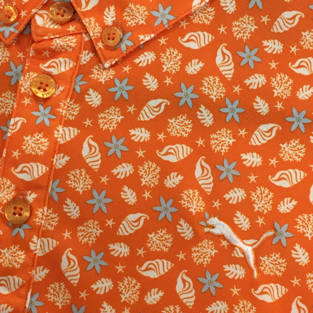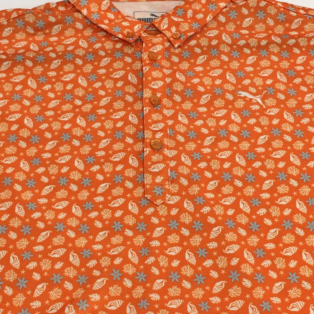 プーマ 半袖ポロシャツ オレンジ×白 総柄 貝殻 ボタンダウン メンズ L ゴルフウェア PUMA