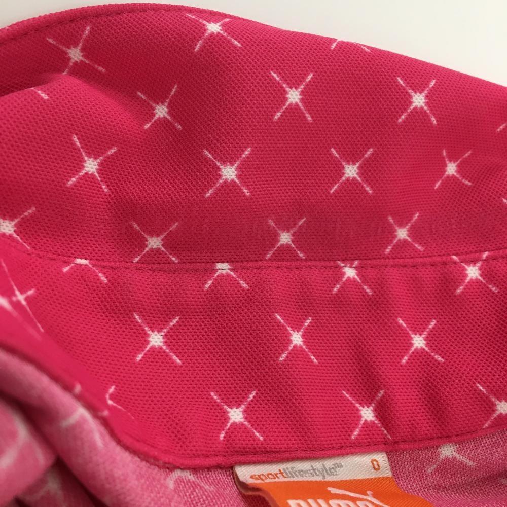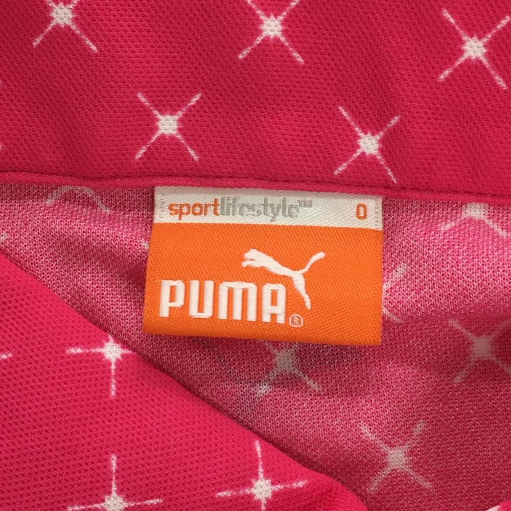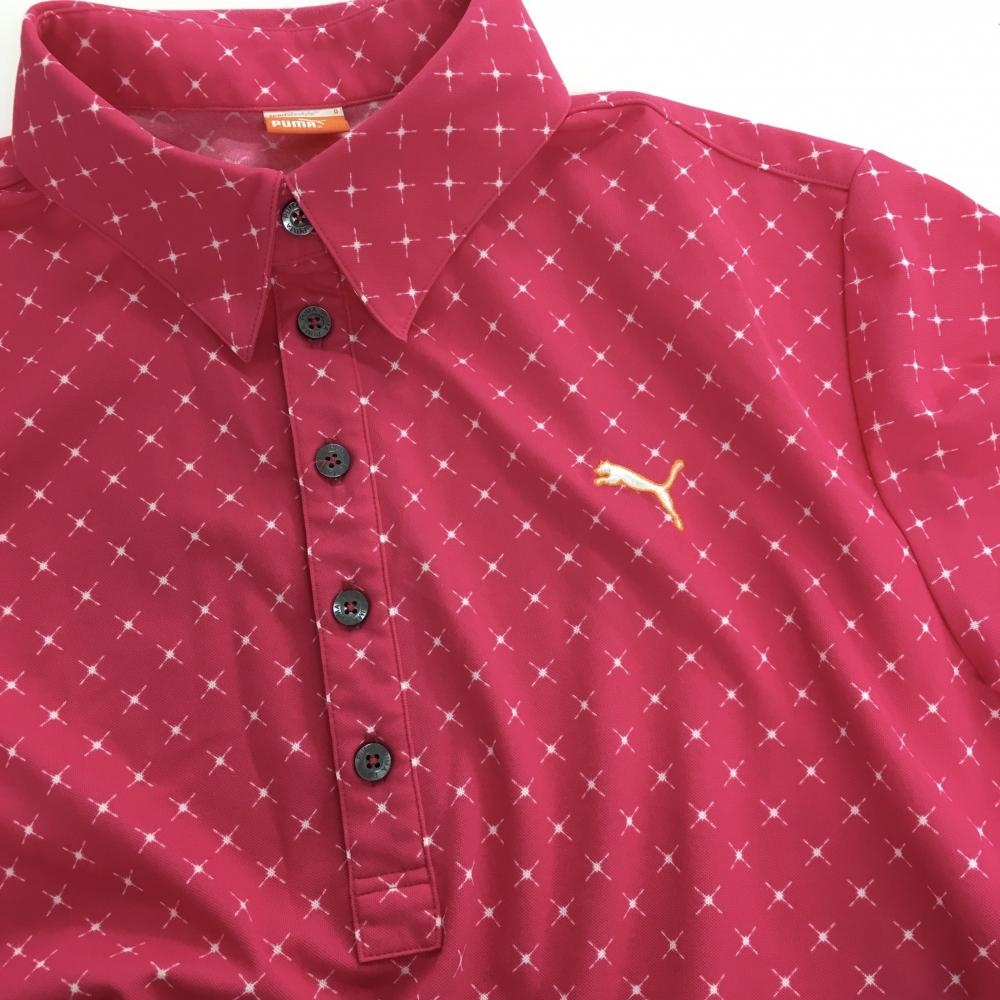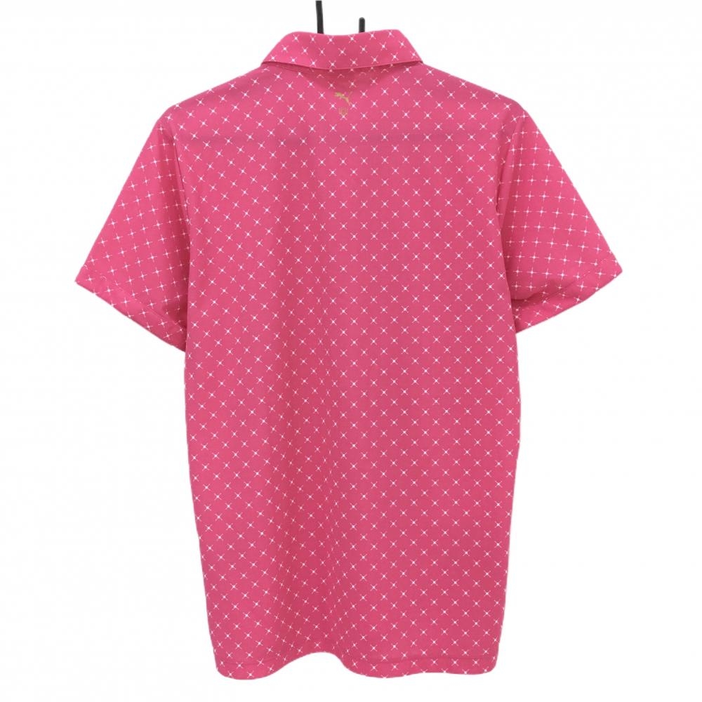 【美品】プーマ 半袖ポロシャツ ピンク×白 総柄 ロゴ刺しゅう メンズ O ゴルフウェア PUMA