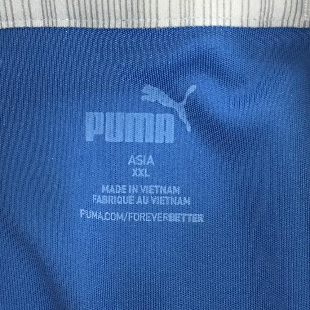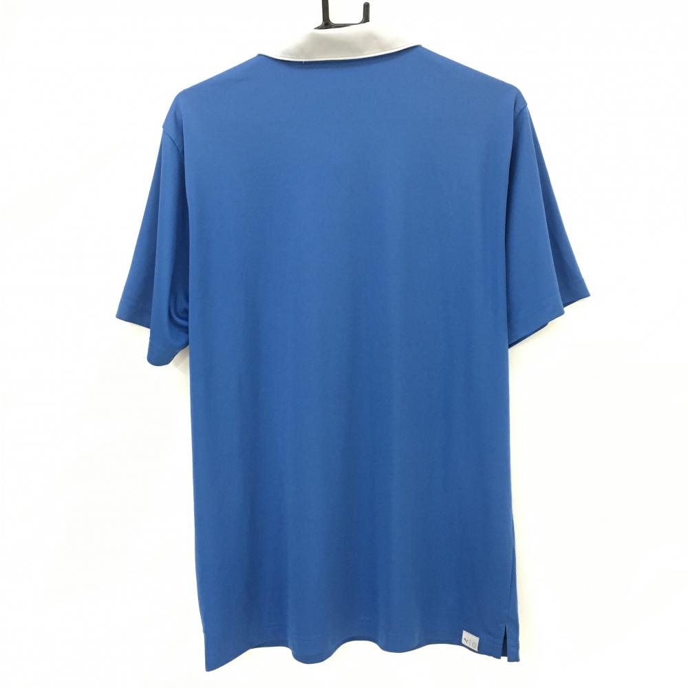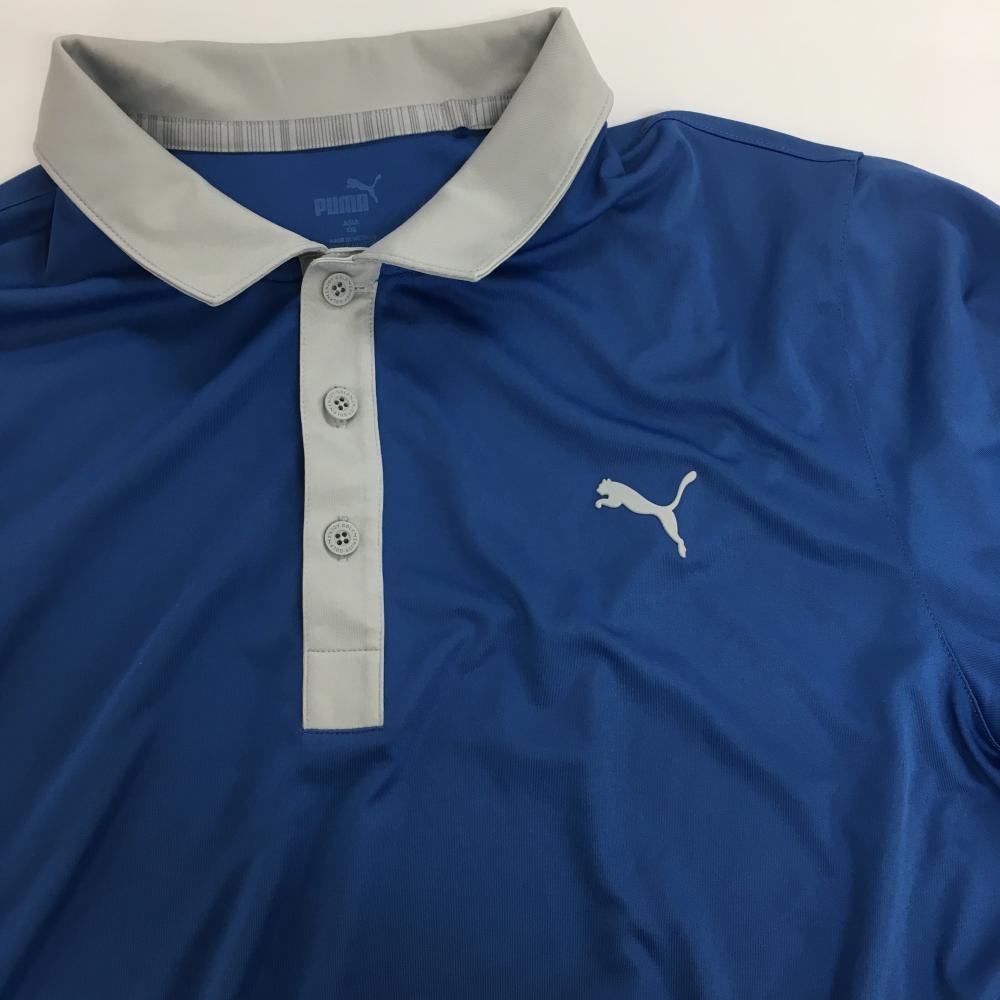 【美品】プーマ 半袖ポロシャツ ブルー×ライトグレー 胸元ロゴ メンズ XXL ゴルフウェア PUMA