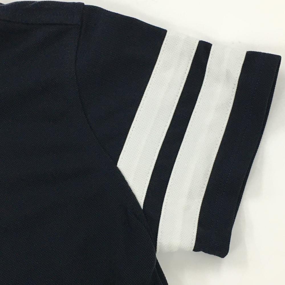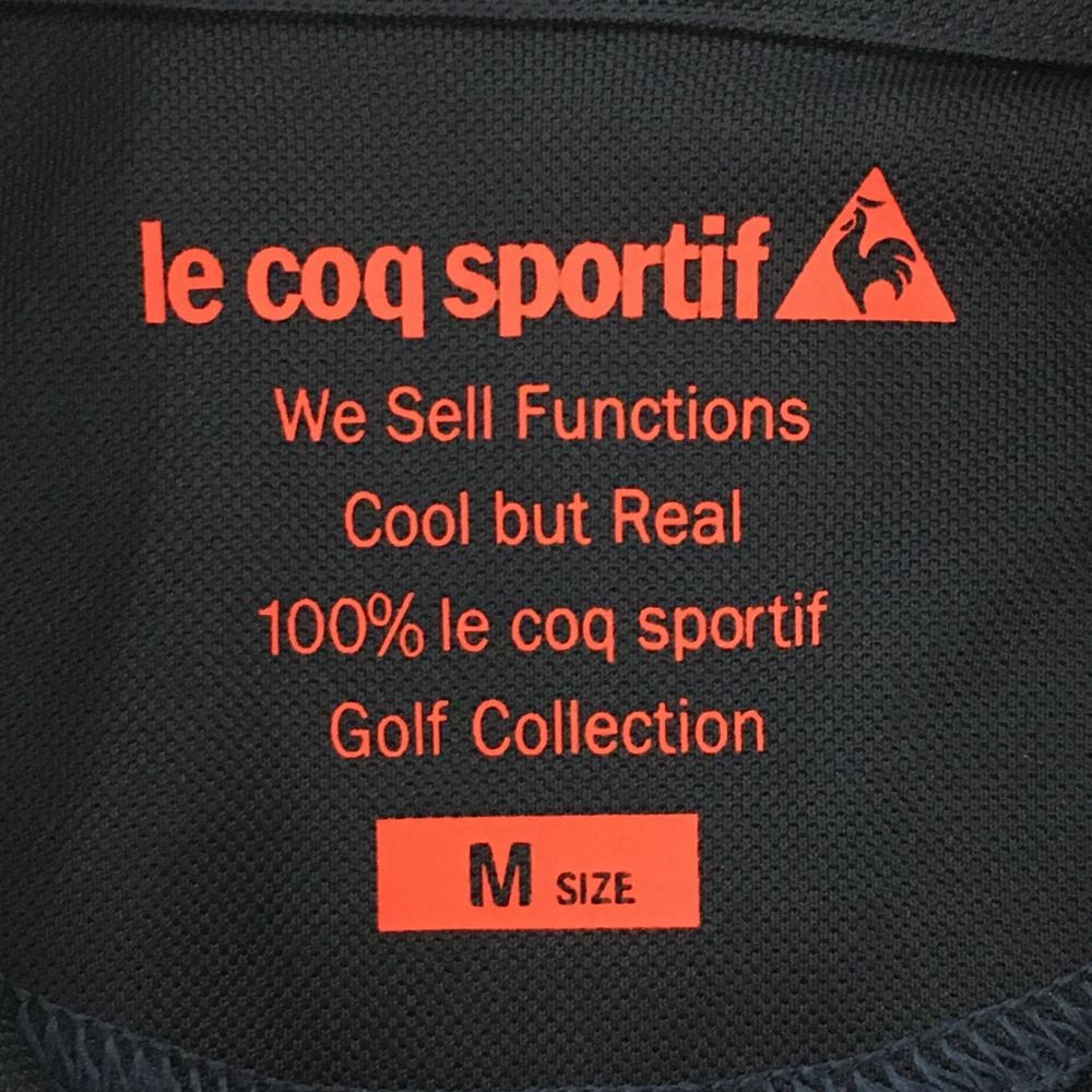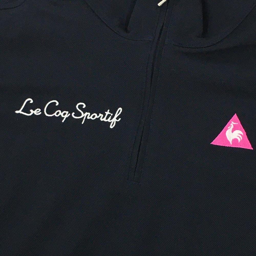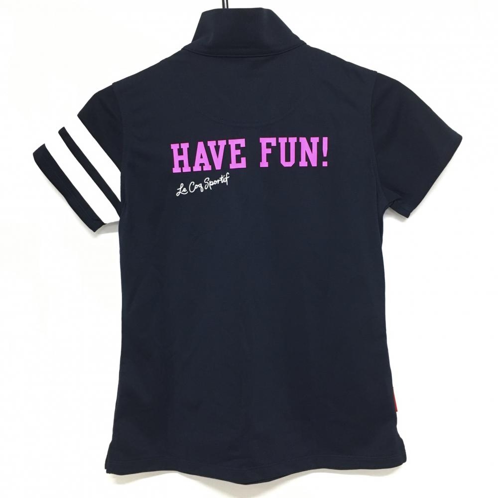 【美品】ルコックゴルフ 半袖ハイネックシャツ ネイビー×白 ハーフジップ 袖2ライン レディース M ゴルフウェア le coq sportif
