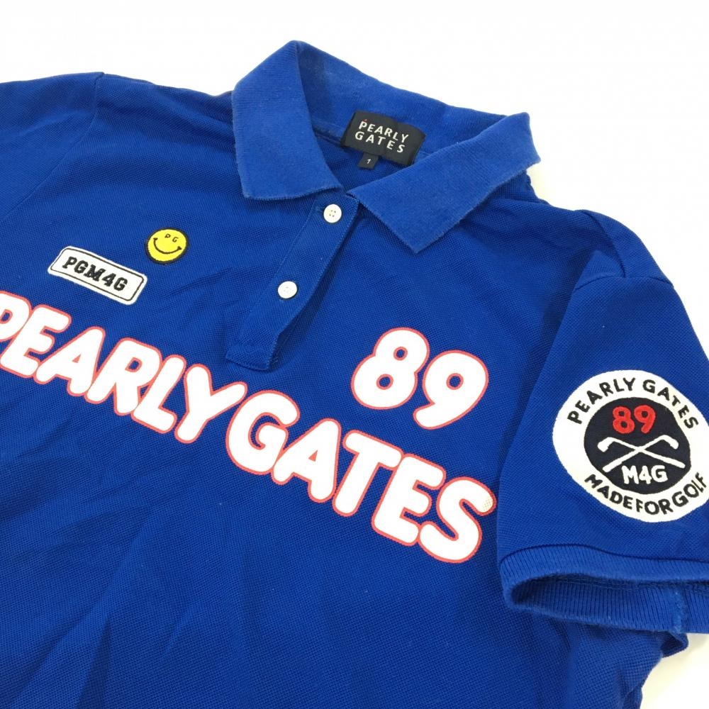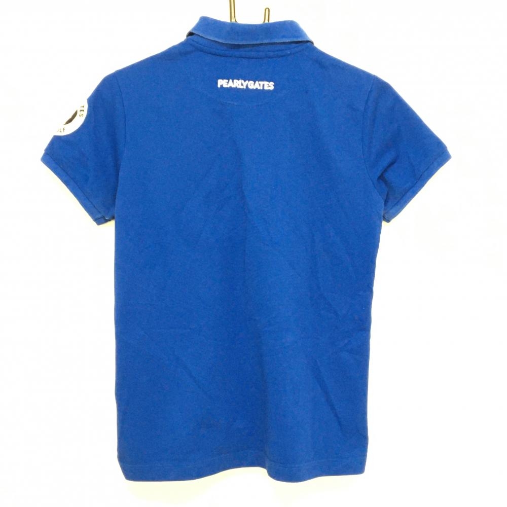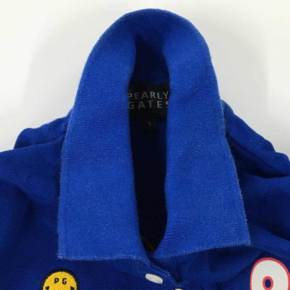 パーリーゲイツ 半袖ポロシャツ ブルー×白 ニコちゃん スマイル レディース 1(M) ゴルフウェア PEARLY GATES