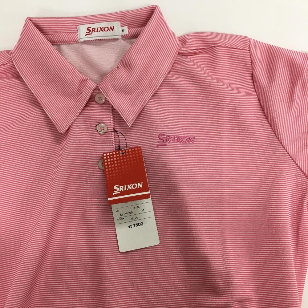 【新品】スリクソン 半袖ポロシャツ ピンク×白 細ボーダー レディース M ゴルフウェア SRIXON