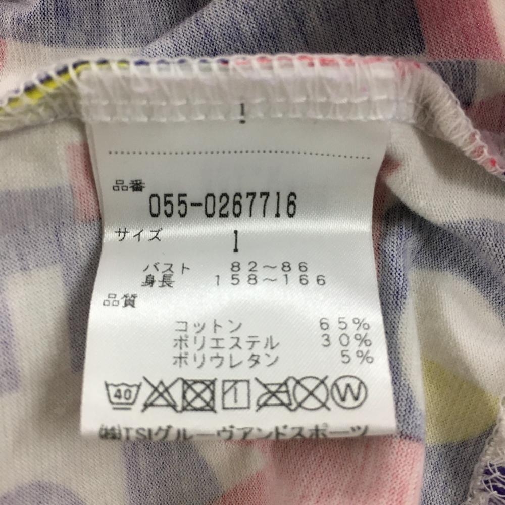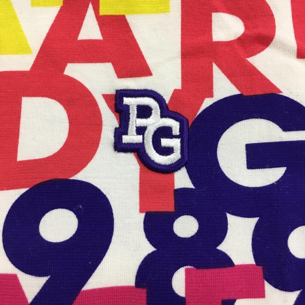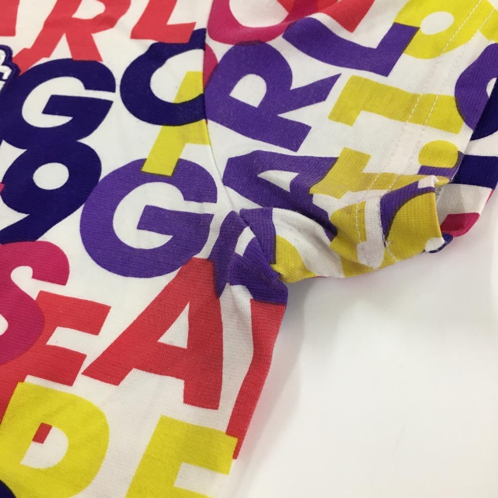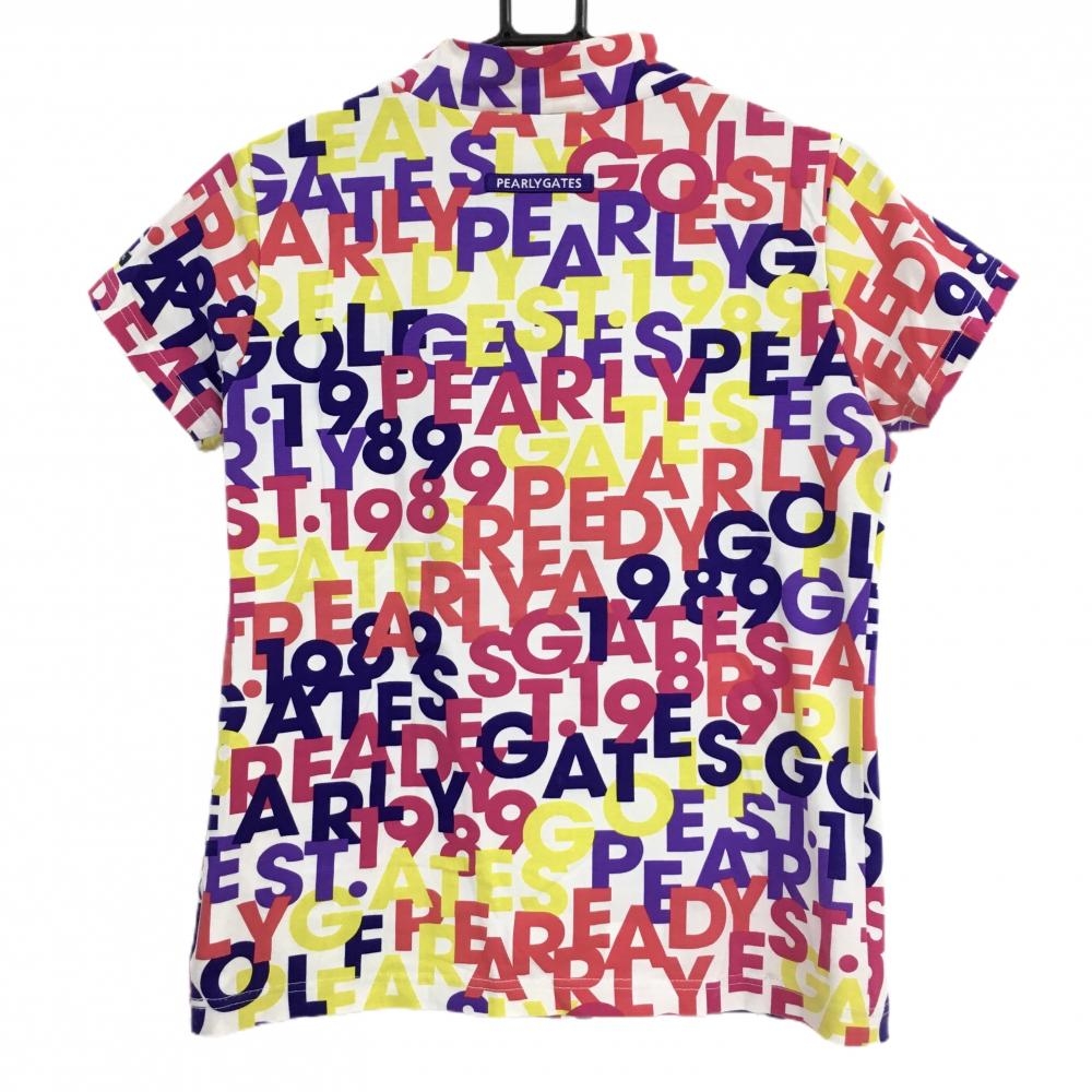 パーリーゲイツ 半袖ハイネックシャツ 白×マルチカラー ロゴ総柄 レディース 1(M) ゴルフウェア PEARLY GATES