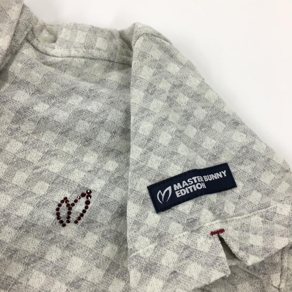 【超美品】マスターバニー 半袖ポロシャツ 杢ライトグレー 格子柄 ラインストーン レディース 0(S) ゴルフウェア MASTER BUNNY EDITION