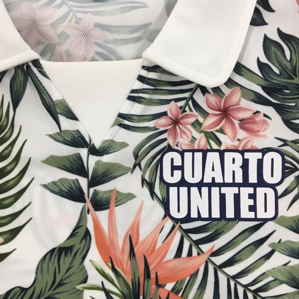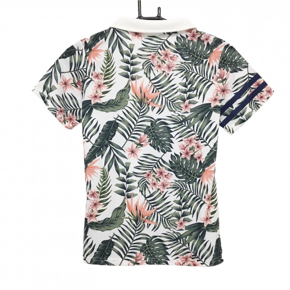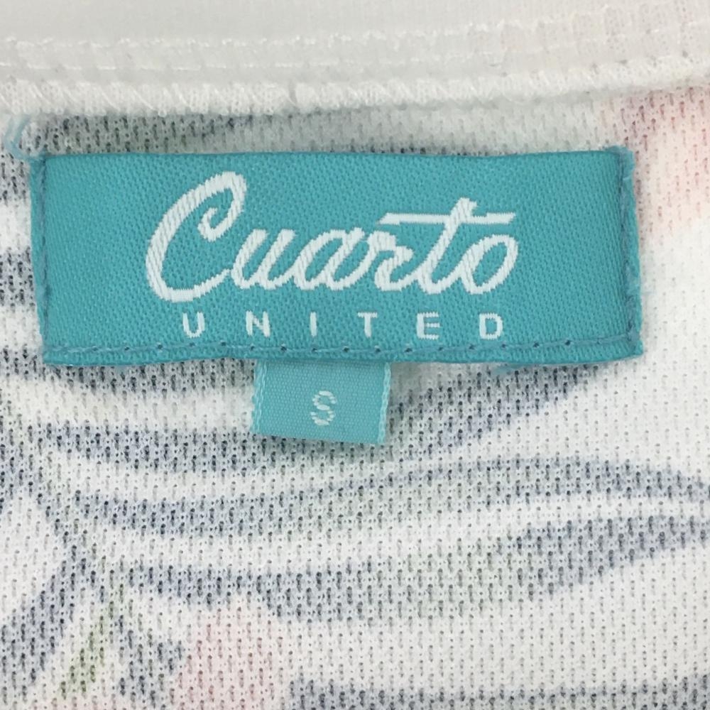 【美品】クアルトユナイテッド 襟付きTシャツ 白×グリーン リーフ・花柄 ロゴ レディース S ゴルフウェア CUARTO UNITED