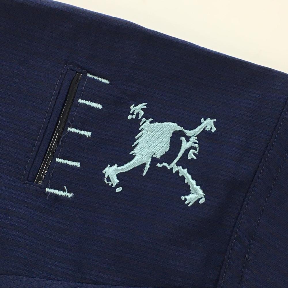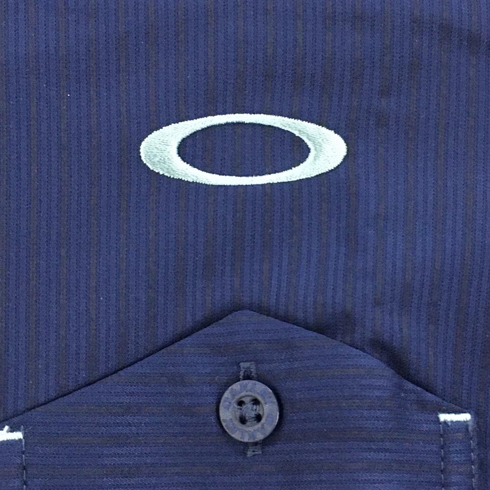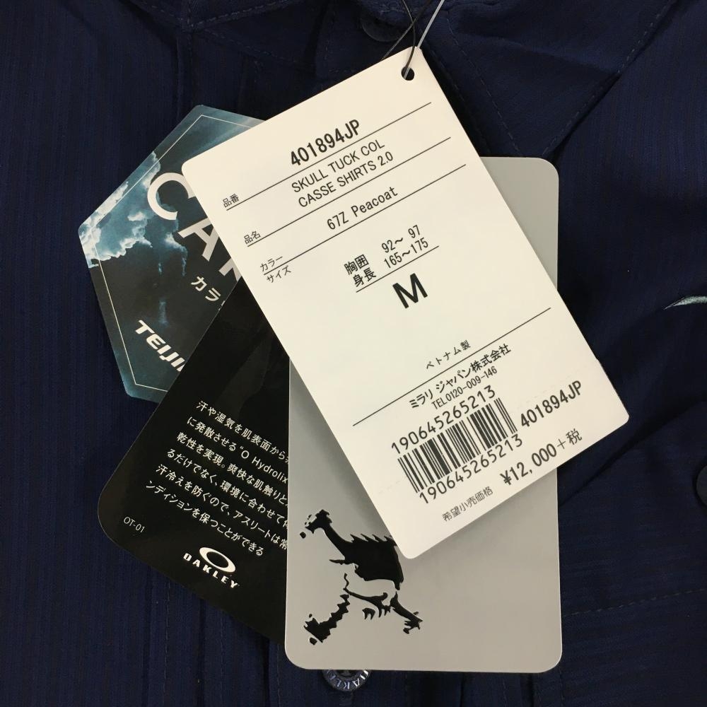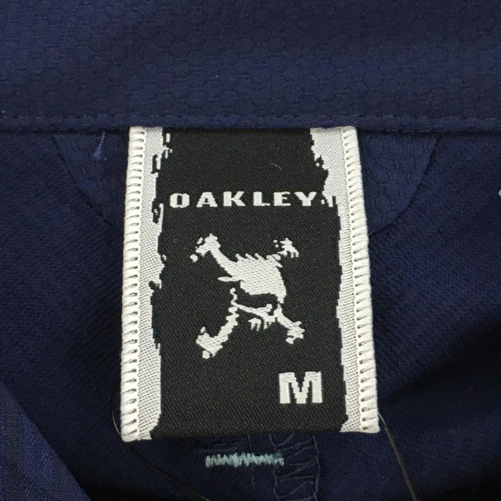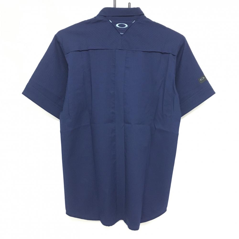 【新品】オークリー 半袖シャツ ネイビー 地模様 ティー装着可 吸汗速乾 メンズ M ゴルフウェア Oakley