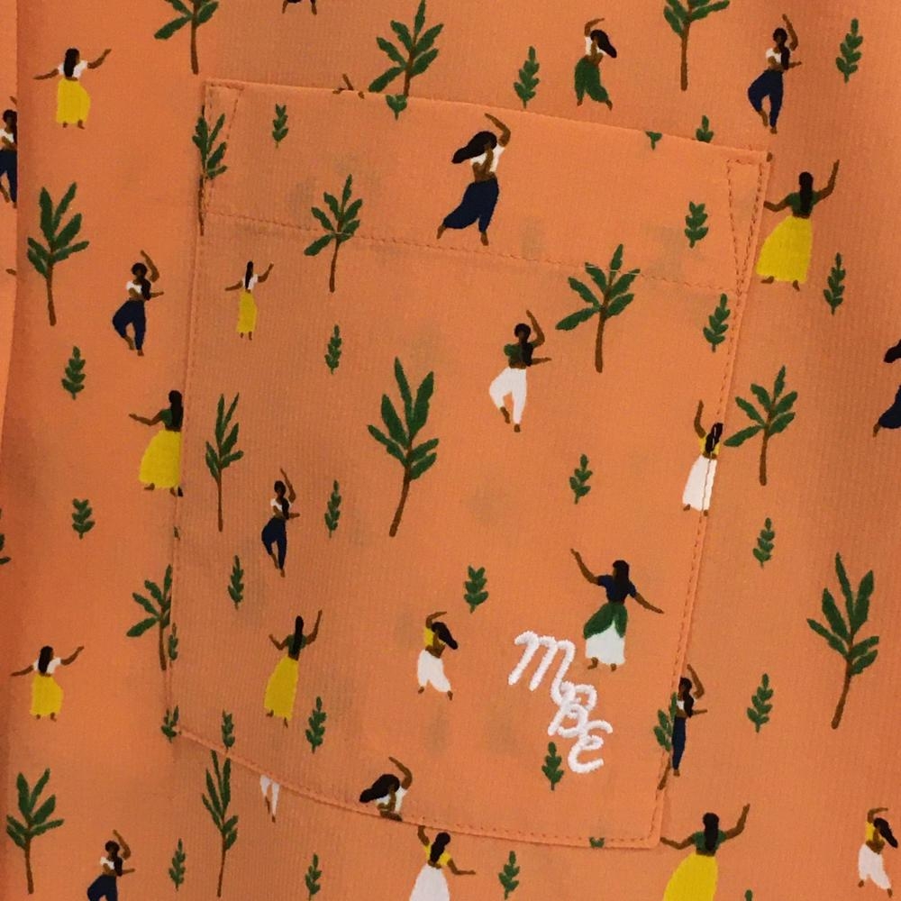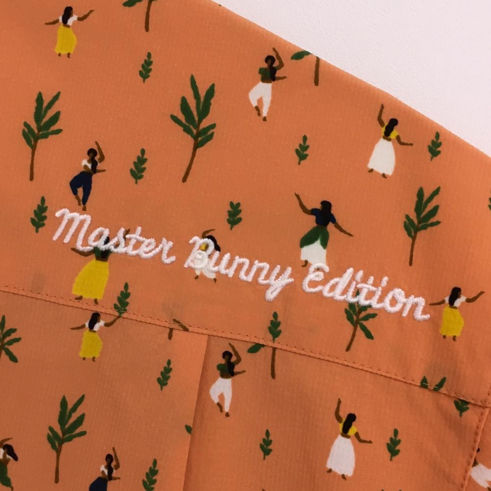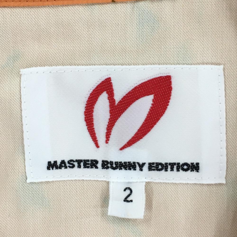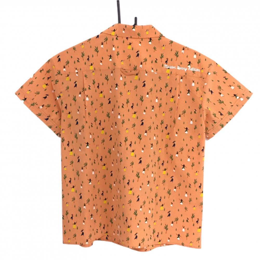 【超美品】マスターバニー 半袖シャツ ライトオレンジ×グリーン 樹木・人物総柄 レディース 2(L) ゴルフウェア MASTER BUNNY EDITION