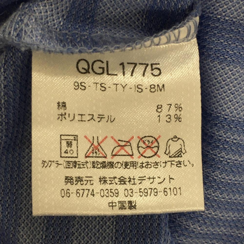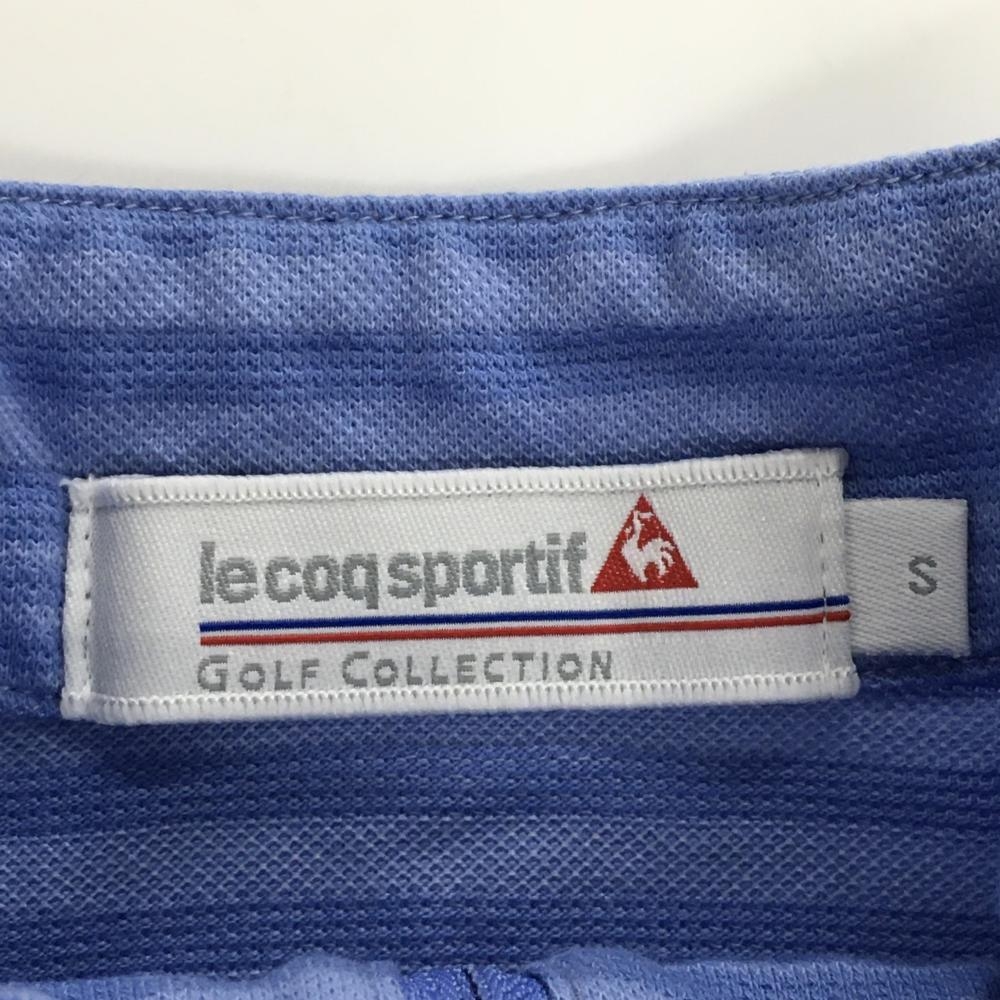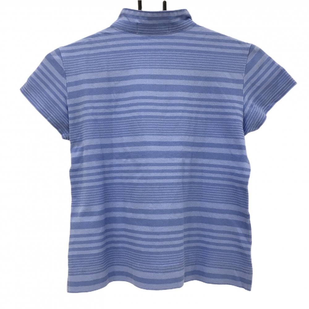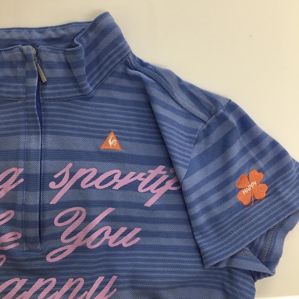 【超美品】ルコックゴルフ 半袖ハイネックシャツ ブルー系×ピンク ランダムボーダー レディース S ゴルフウェア le coq sportif