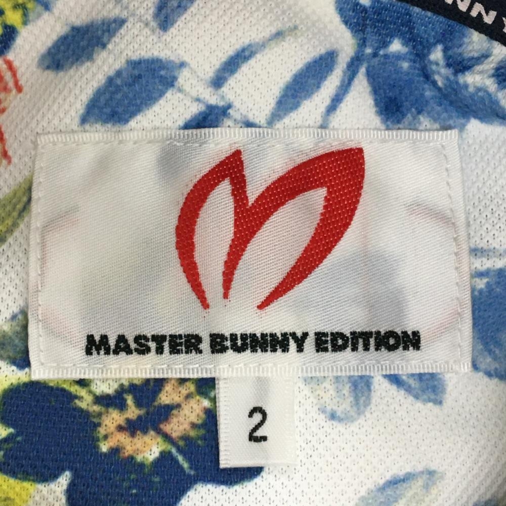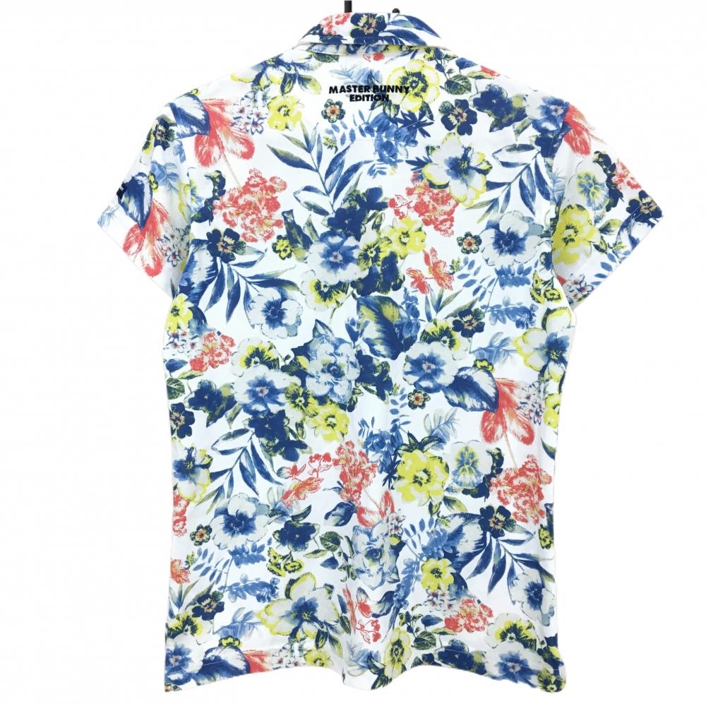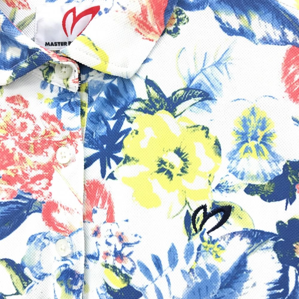 【超美品】マスターバニー 半袖ポロシャツ 白×レッド×イエロー 花柄 レディース 2(L) ゴルフウェア MASTER BUNNY EDITION