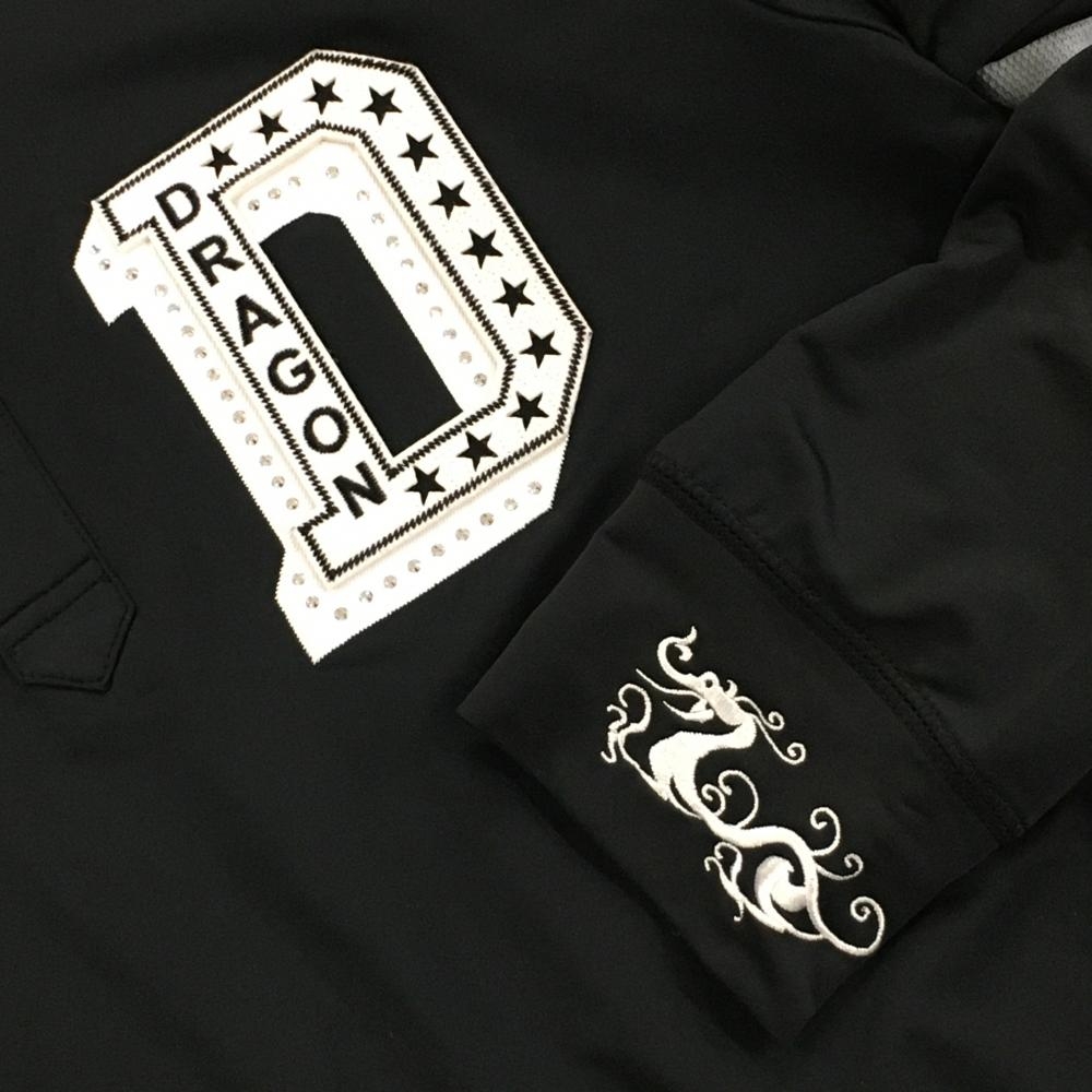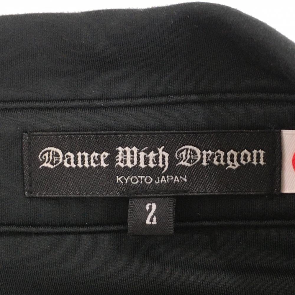 【美品】ダンスウィズドラゴン 長袖ポロシャツ 黒 ワッペンスパンコール ボタンダウン メンズ 2(M) ゴルフウェア Dance With Dragon