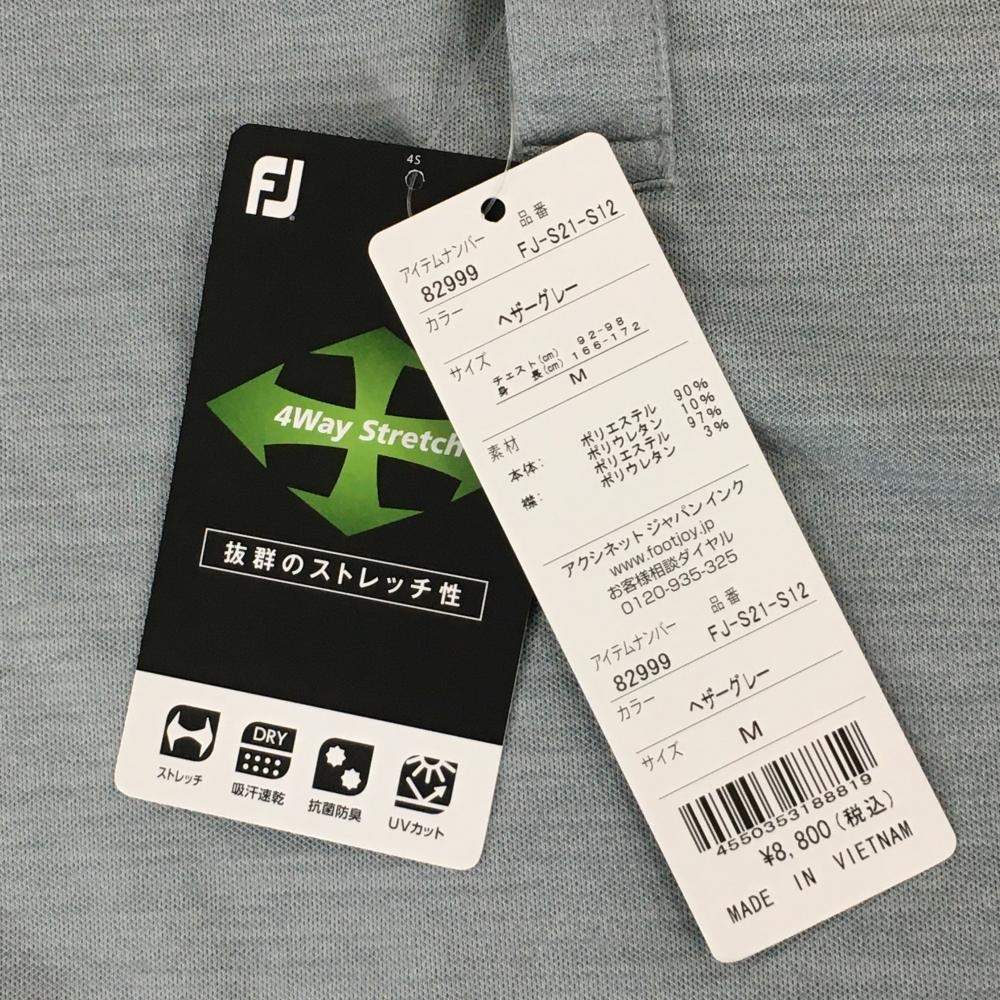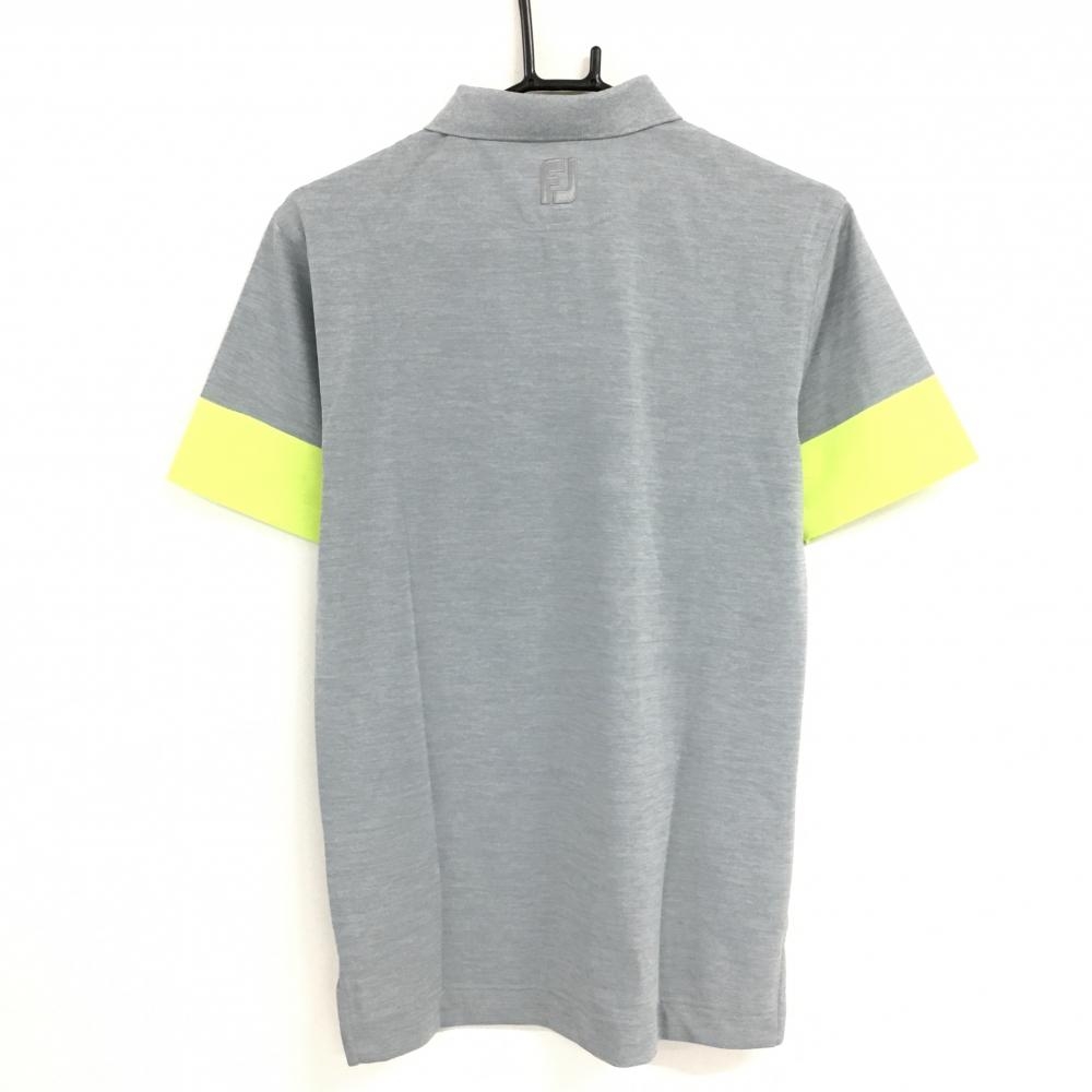 【新品】フットジョイ 半袖ポロシャツ グレー×イエロー 吸汗速乾 防菌防臭 UVカット メンズ M ゴルフウェア FootJoy