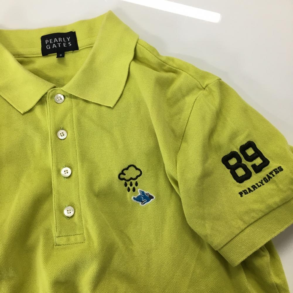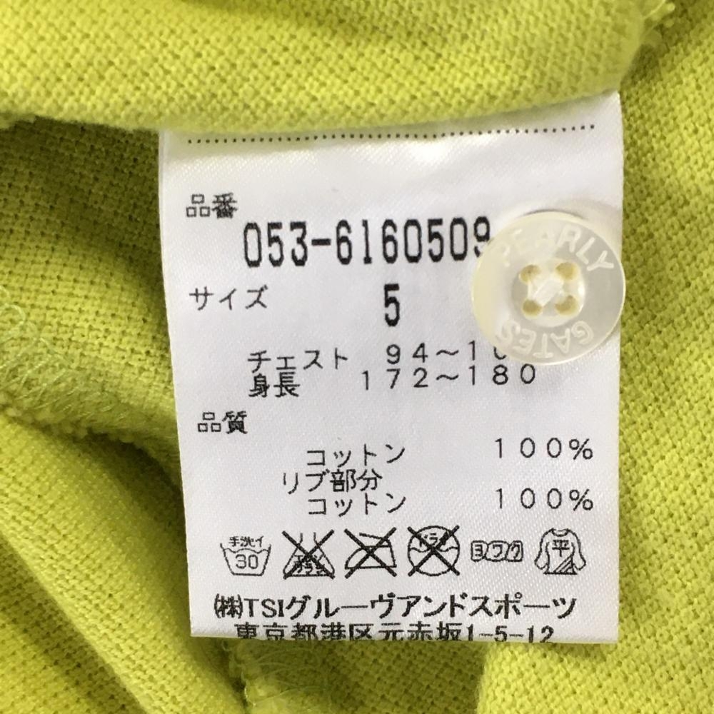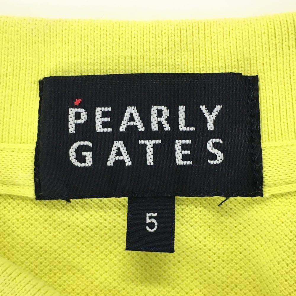 パーリーゲイツ 半袖ポロシャツ ライムイエロー系 ウェザー刺しゅう コットン100% メンズ 5(L) ゴルフウェア PEARLY GATES