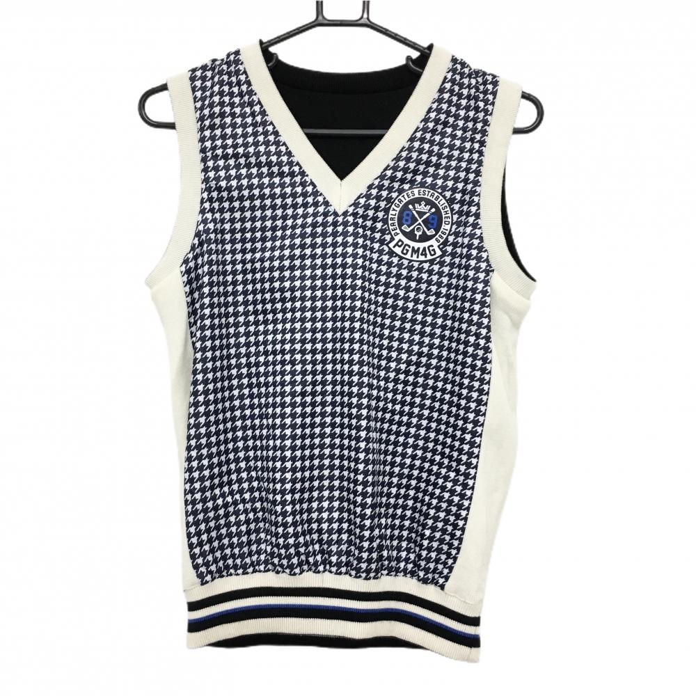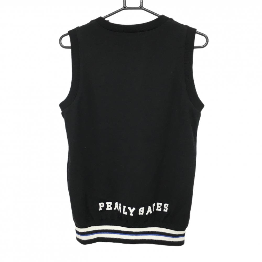 【美品】パーリーゲイツ リバーシブルベスト 黒 Vネック 裏千鳥格子 レディース 1(M) ゴルフウェア PEARLY GATES