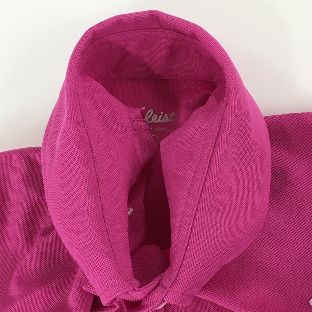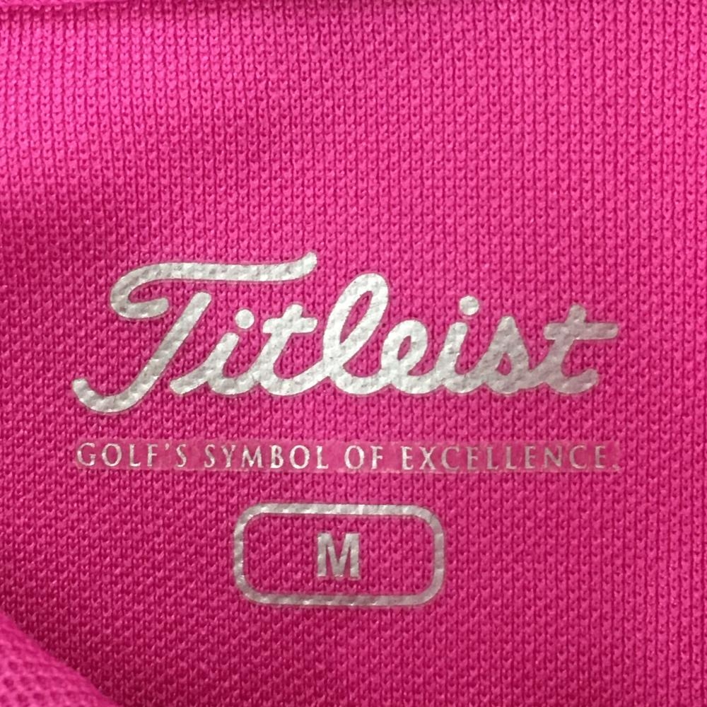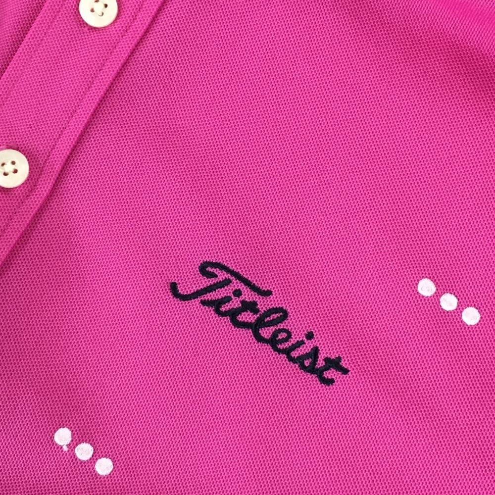 【美品】タイトリスト 半袖ポロシャツ ピンク×白 刺しゅう柄 ボタンダウン メンズ M ゴルフウェア TITLEIST