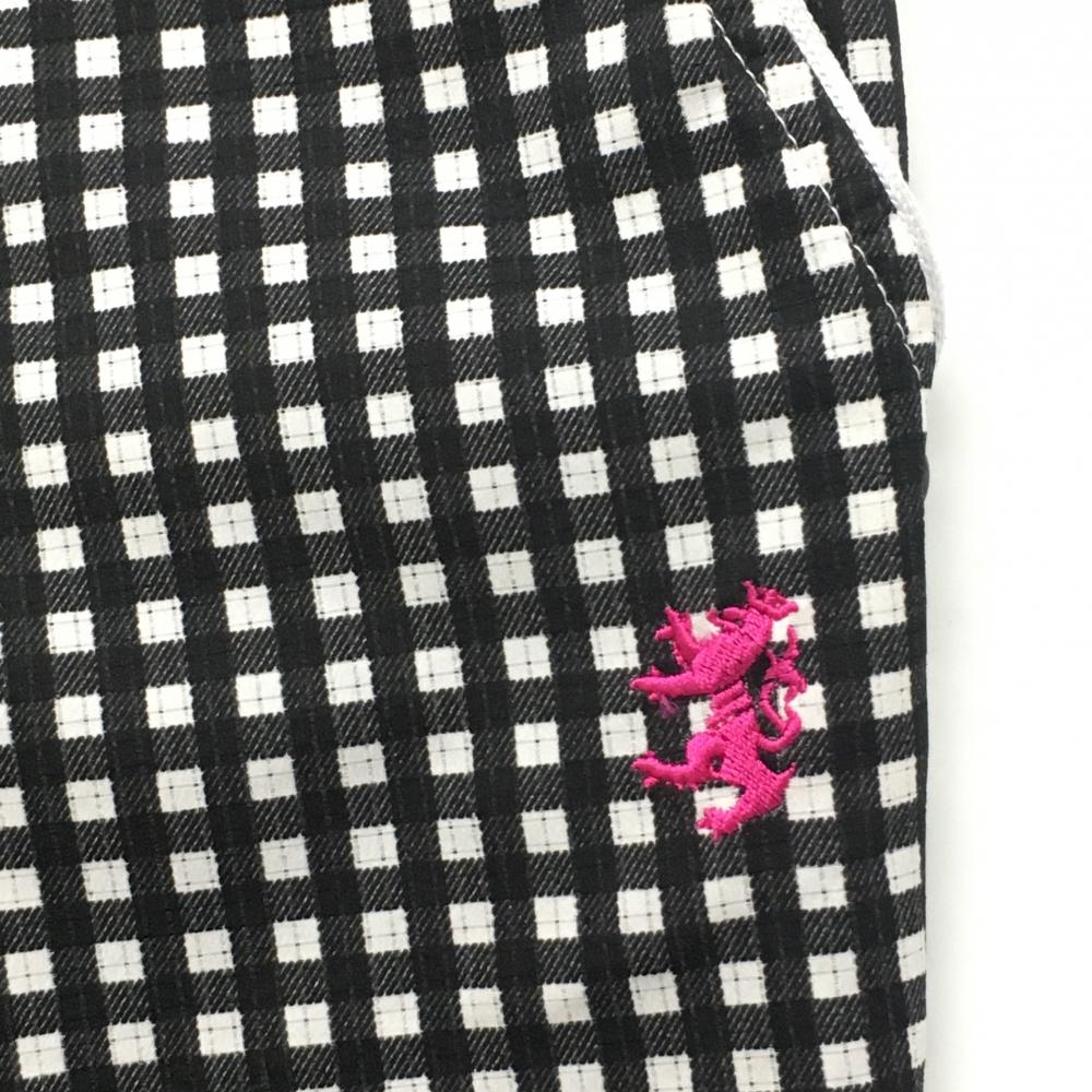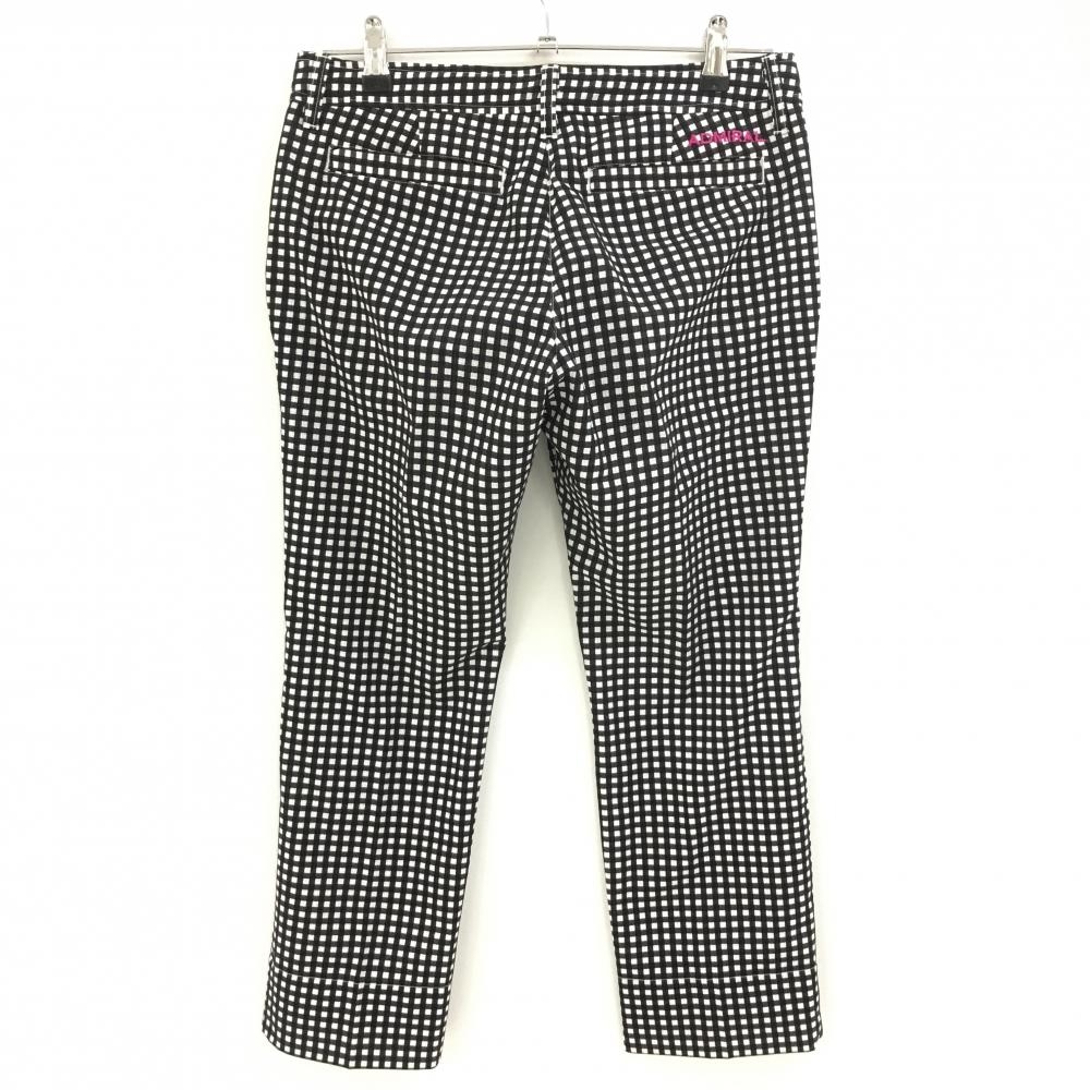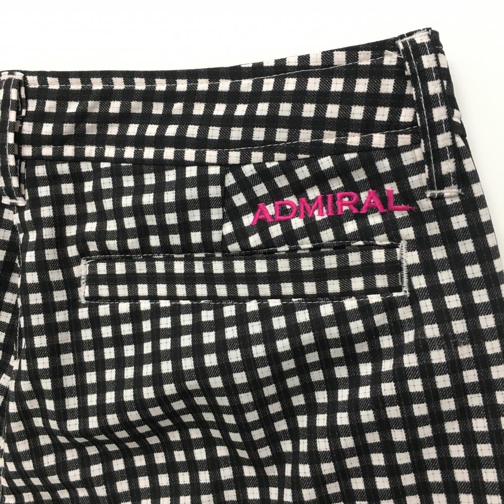 【超美品】アドミラル 七分丈パンツ 黒×白 チェック柄 ロゴピンク レディース M ゴルフウェア Admiral