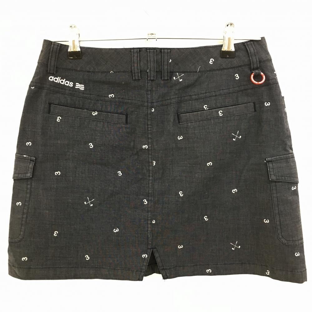 アディダス カーゴスカート ダークグレー×ライトグレー ナンバー総柄 バックロゴ刺しゅう レディース M/M ゴルフウェア adidas