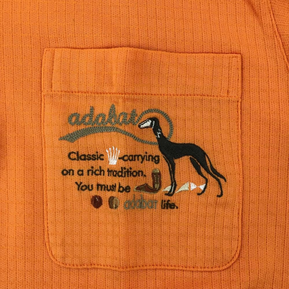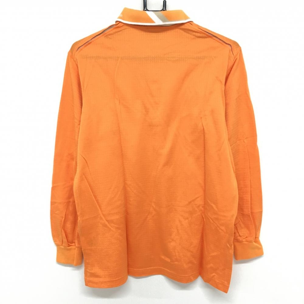 【美品】アダバット 長袖ポロシャツ オレンジ 格子柄地模様 胸ポケット刺しゅう メンズ Ⅲ(M) ゴルフウェア adabat