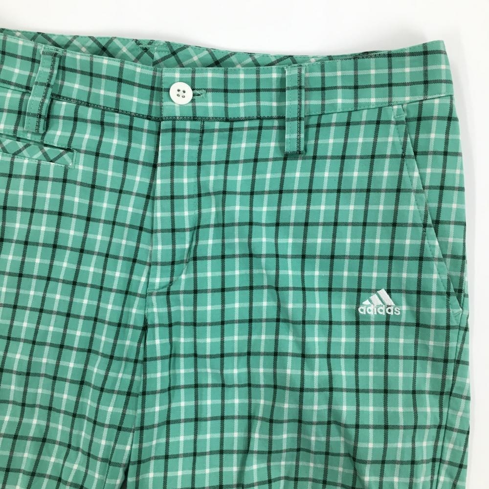 【美品】アディダス ショートパンツ ミントグリーン×黒 チェック ストレッチ レディース M/M ゴルフウェア サンプル品 adidas