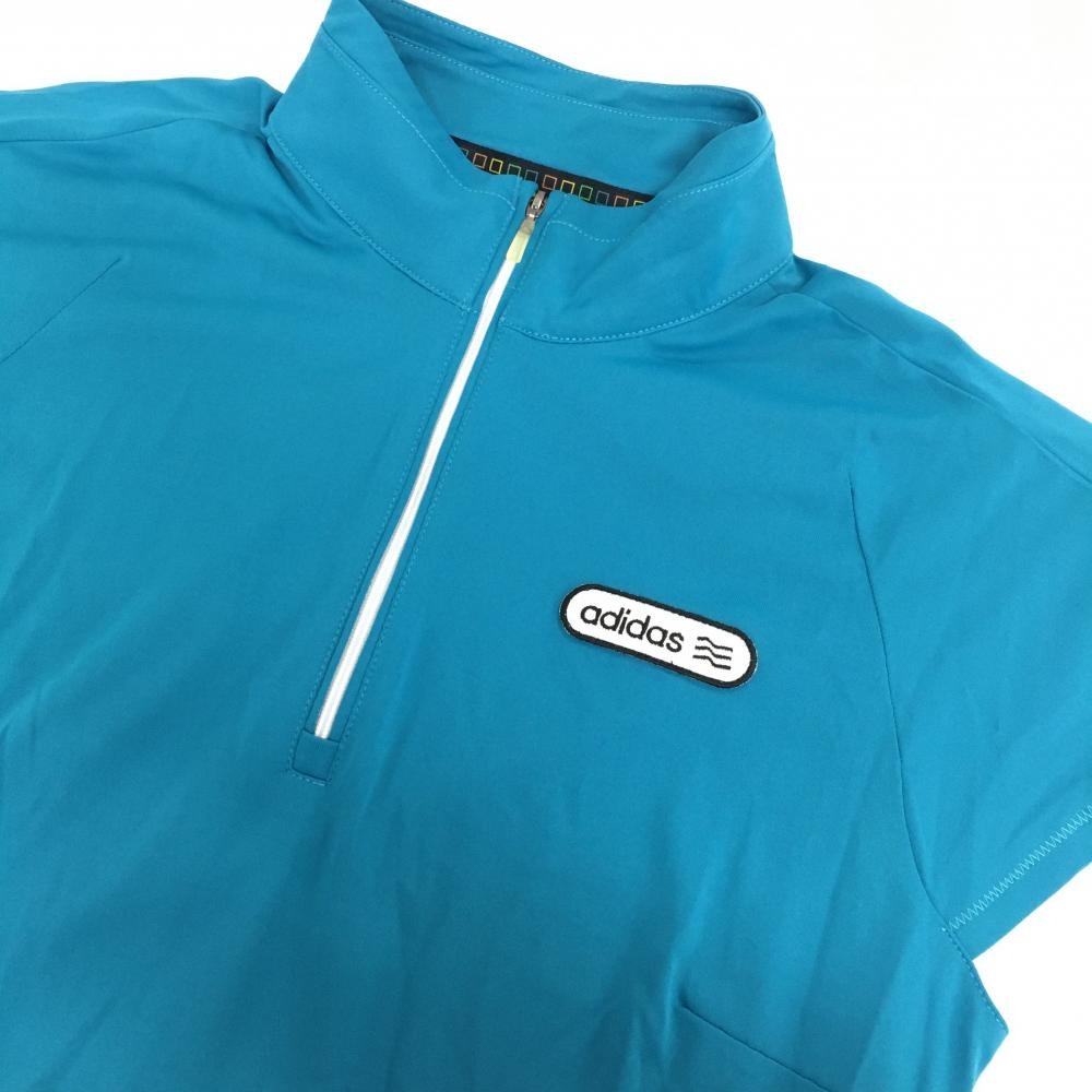 【超美品】アディダス 半袖ハイネックワンピース ブルー ハーフジップ インナーパンツ付 レディース M ゴルフウェア adidas