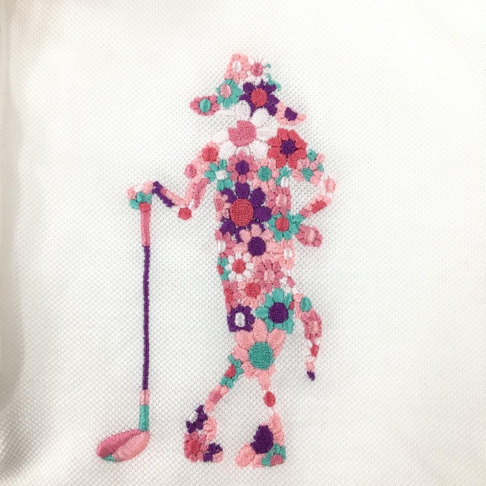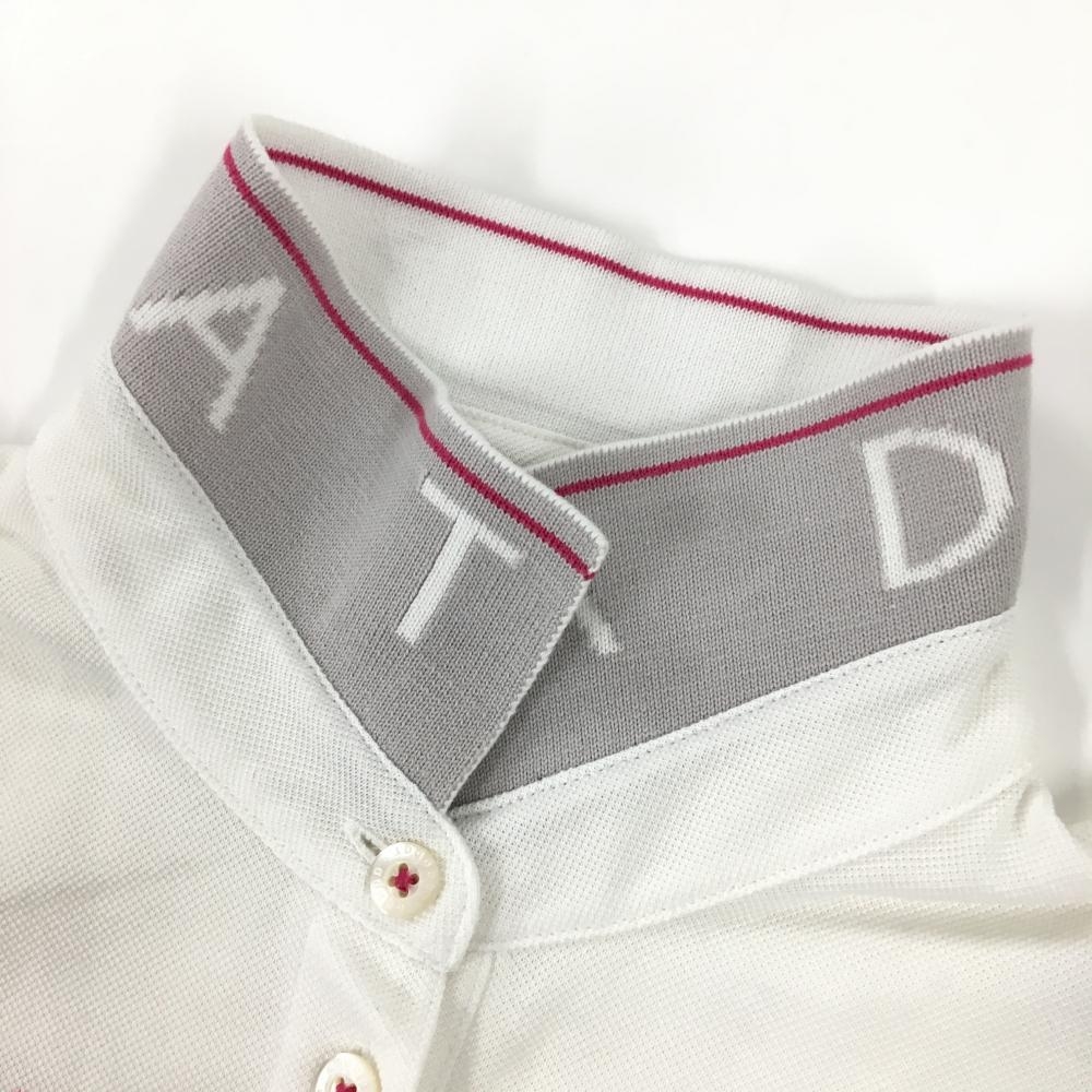 【超美品】アダバット 半袖ポロシャツ 白×ピンク 犬刺しゅう 襟裏ロゴ レディース 36(S) ゴルフウェア adabat