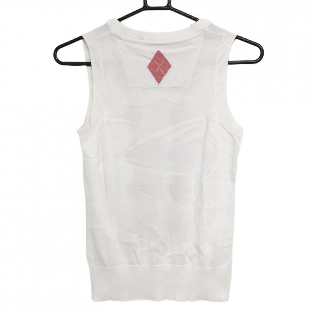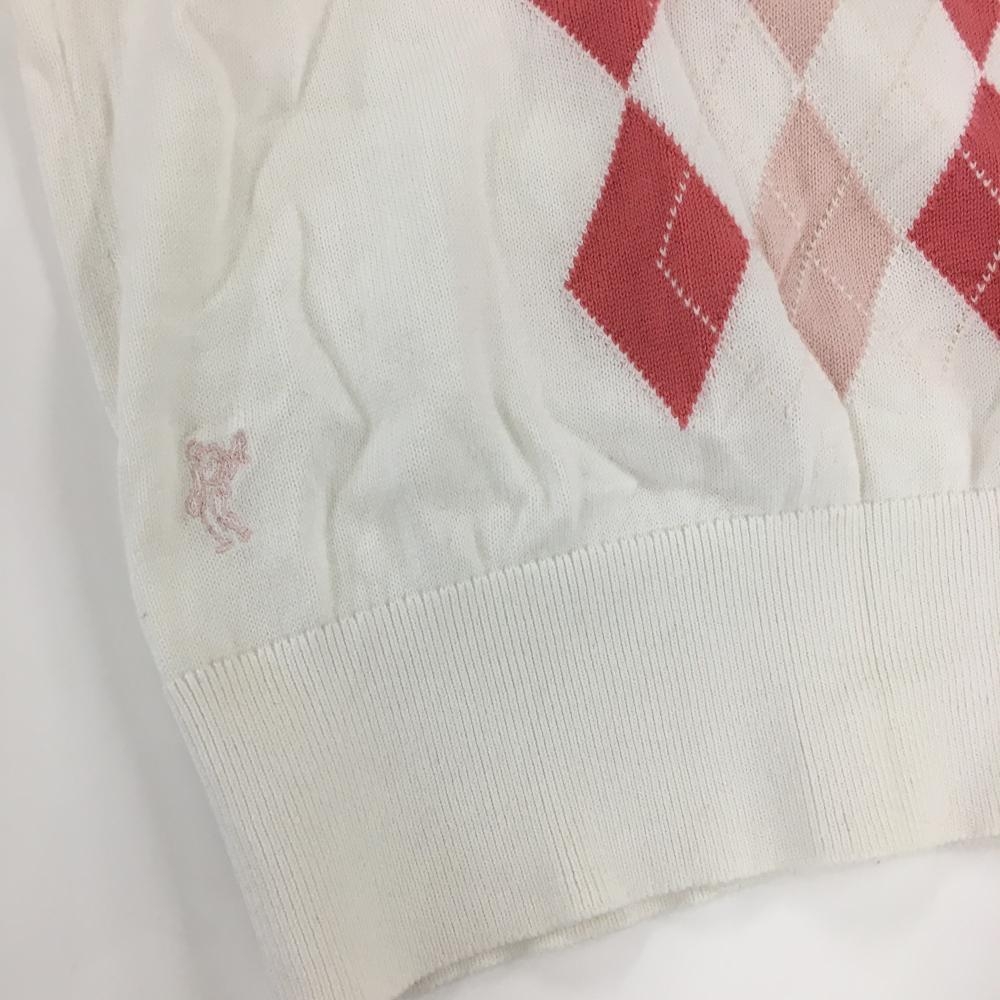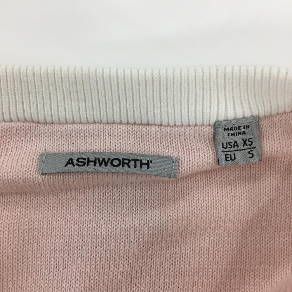 【美品】アシュワース ニットベスト 白×ピンク 前面アーガイル コットン100% レディース USA-XS ゴルフウェア ASHWORTH