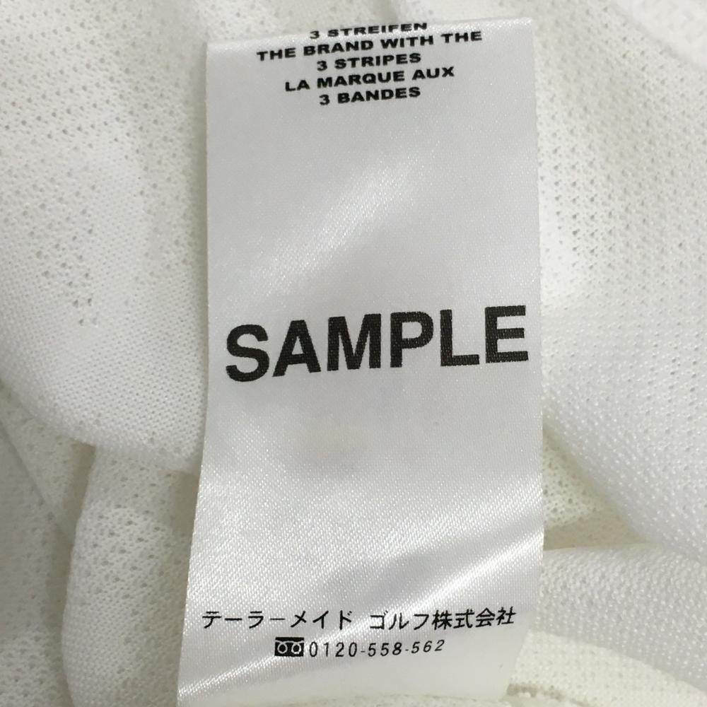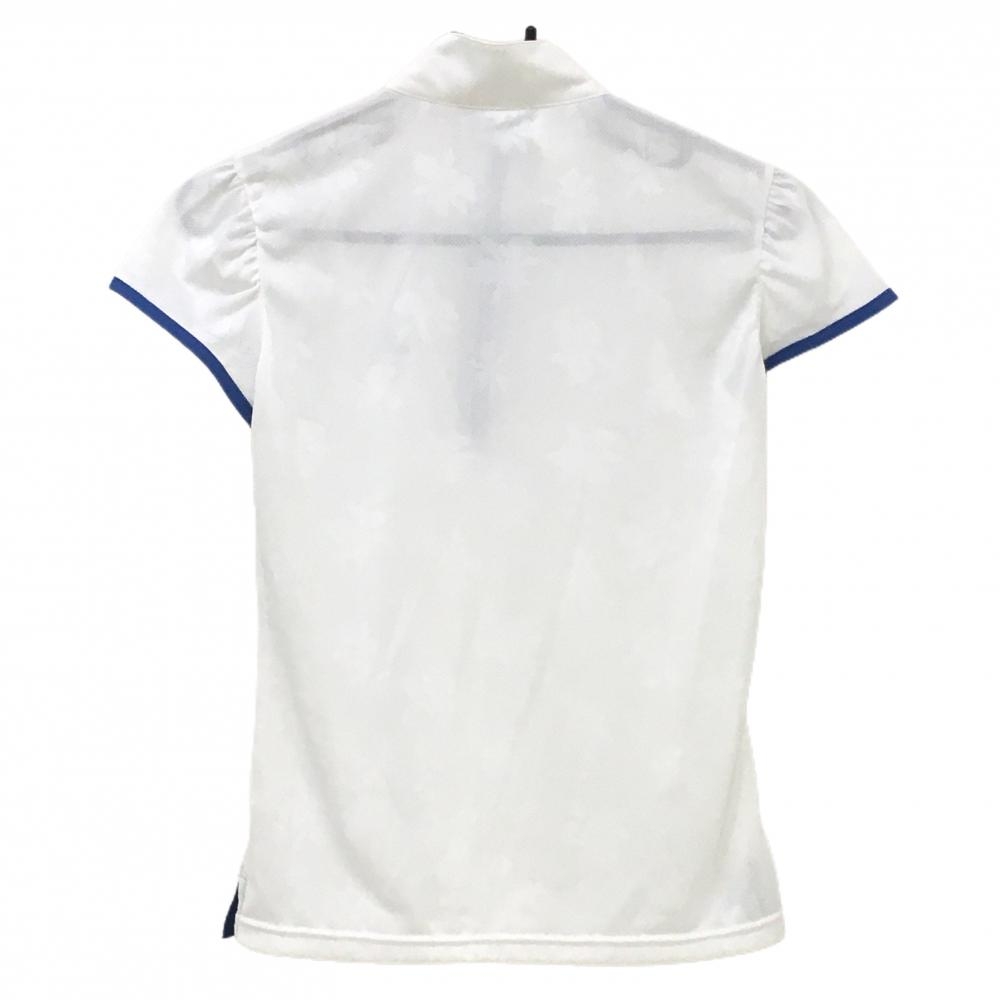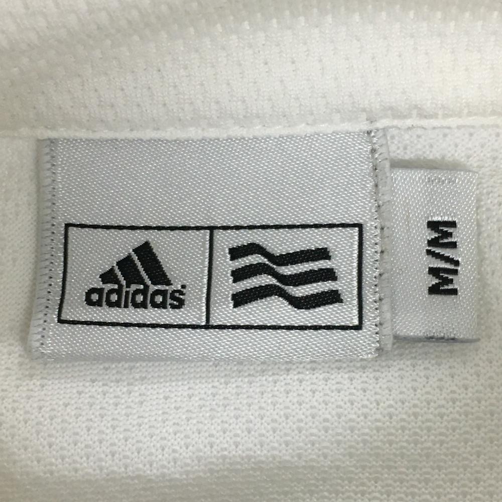 【美品】アディダス 半袖ハイネックシャツ 白×ブルー メッシュ調花柄 パイピング レディース M/M ゴルフウェア adidas