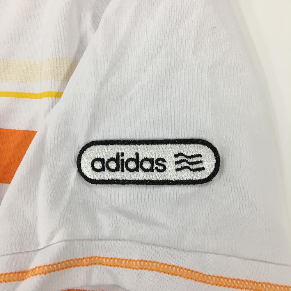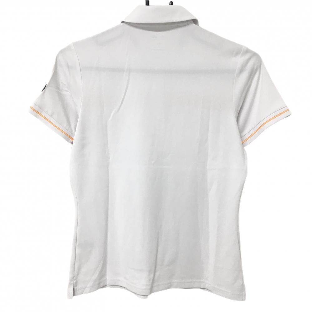 【美品】アディダス 半袖ポロシャツ 白×オレンジ 胸ライン ストレッチ レディース M/M ゴルフウェア adidas