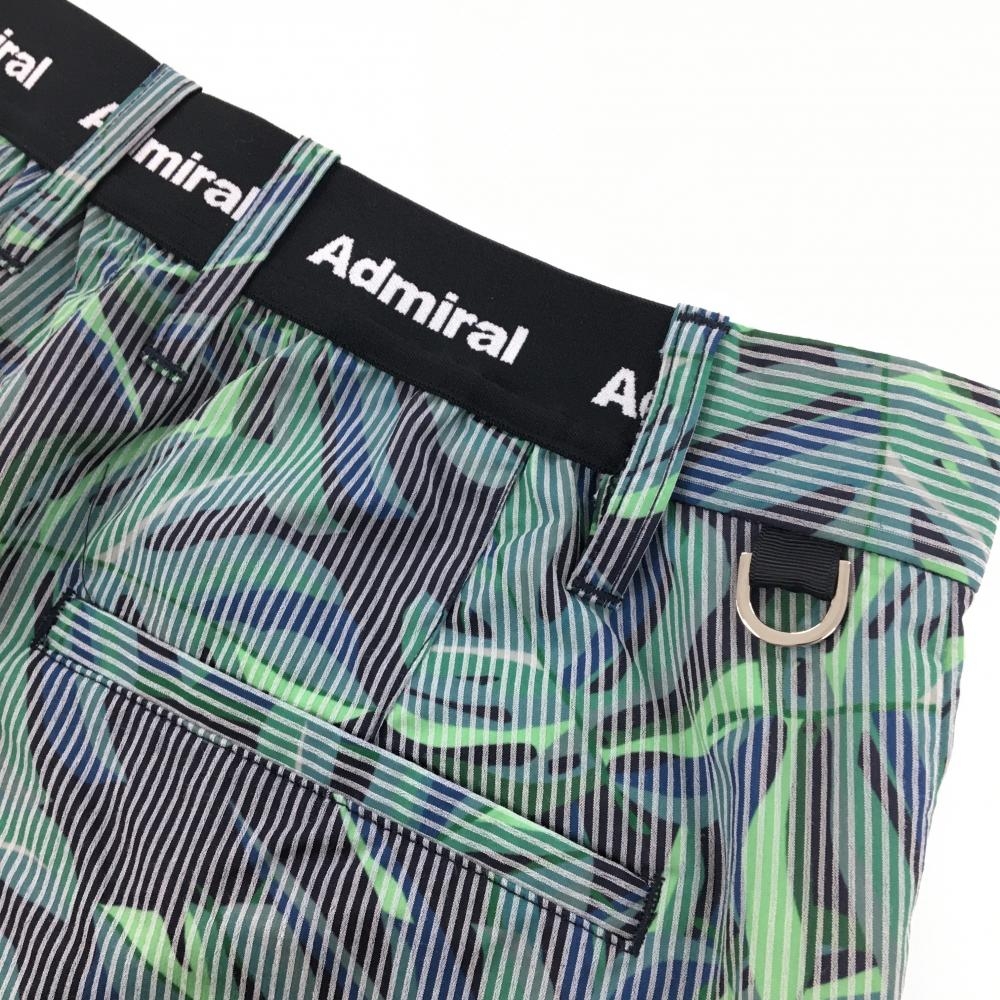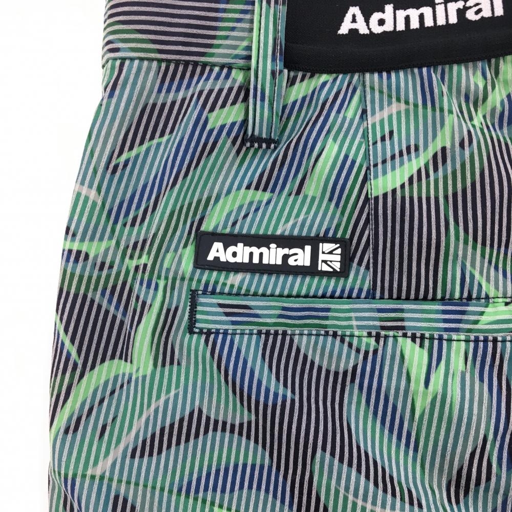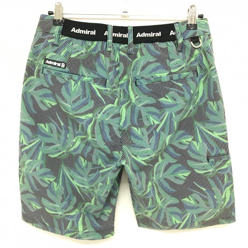 【超美品】アドミラル ハーフパンツ グリーン×黒 リーフ柄 ストライプ メンズ L ゴルフウェア Admiral