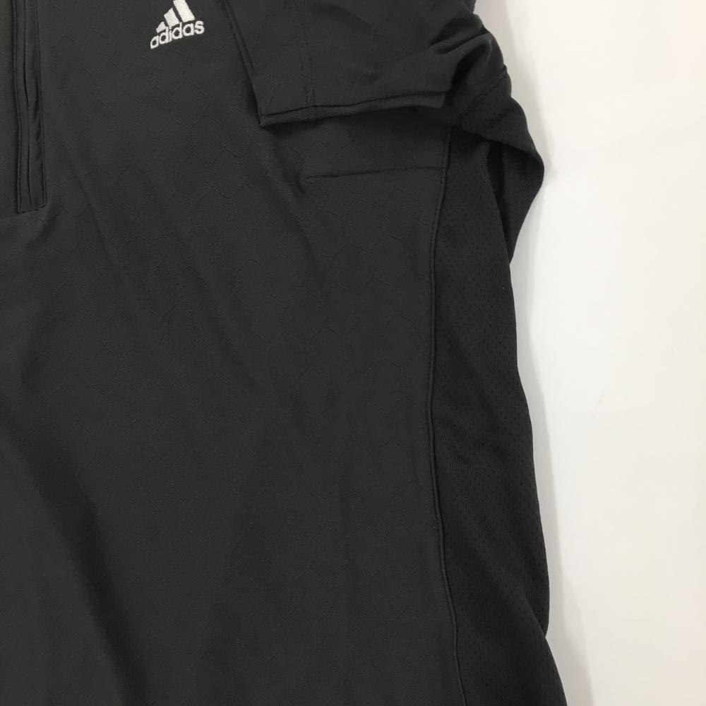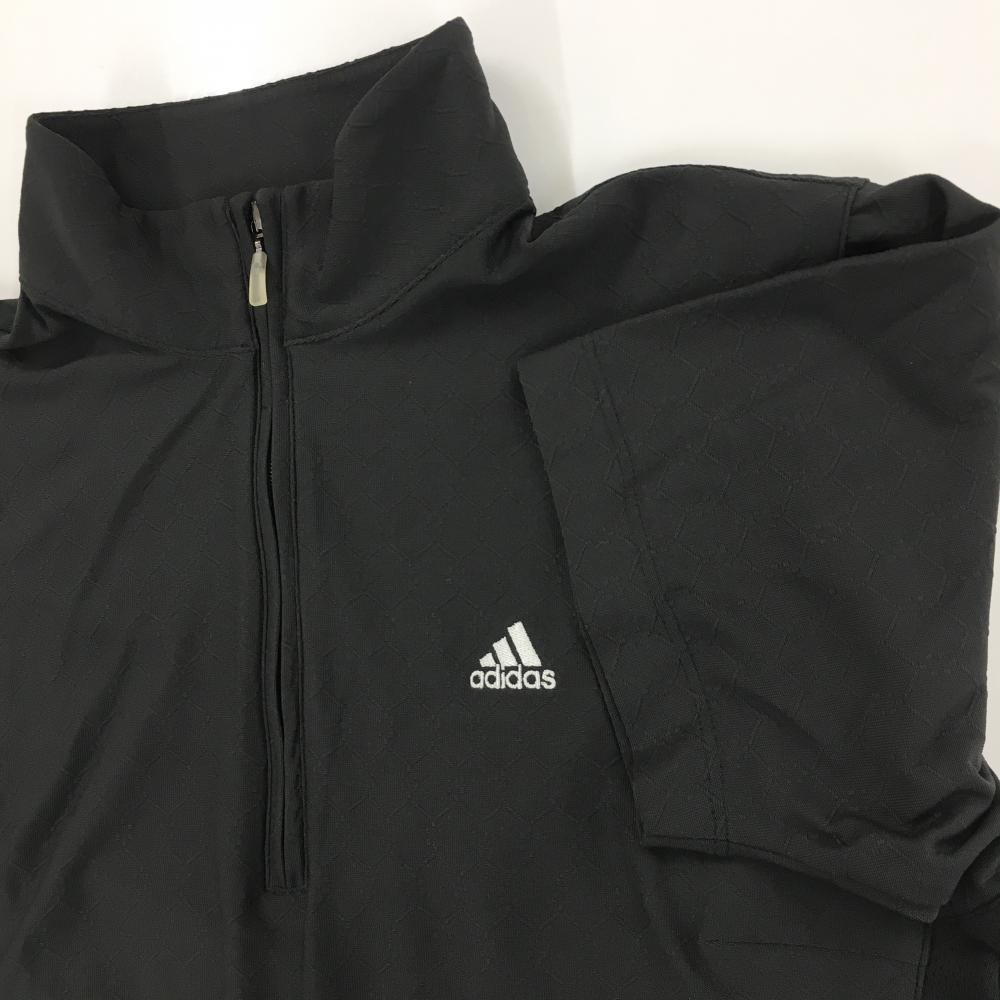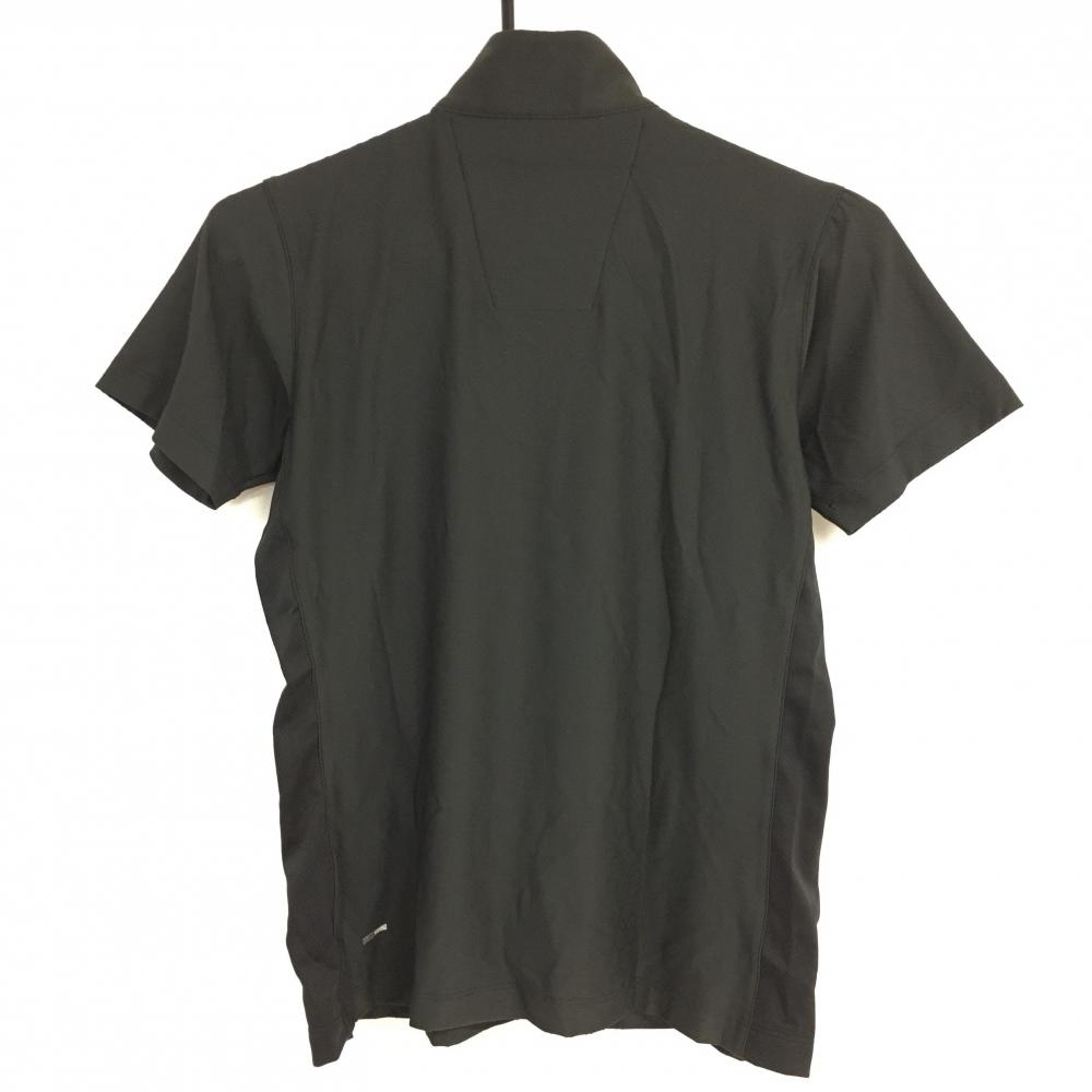 【超美品】アディダス 半袖ハイネックシャツ ダークグレー 総柄地模様 ハーフジップ CLIMACOL レディース M/M ゴルフウェア adidas